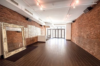 The 4,000-square-foot gallery is split into two interconnected spaces, allowing the opportunity to enjoy different experiences without separation. It boasts generous windows, a reception desk with a mezzanine, a gallery kitchen, and customizable lighting options. There’s also a sunlit room for when lightbulbs just don’t do the trick. Arrangements are flexible and can host up to 250 people.