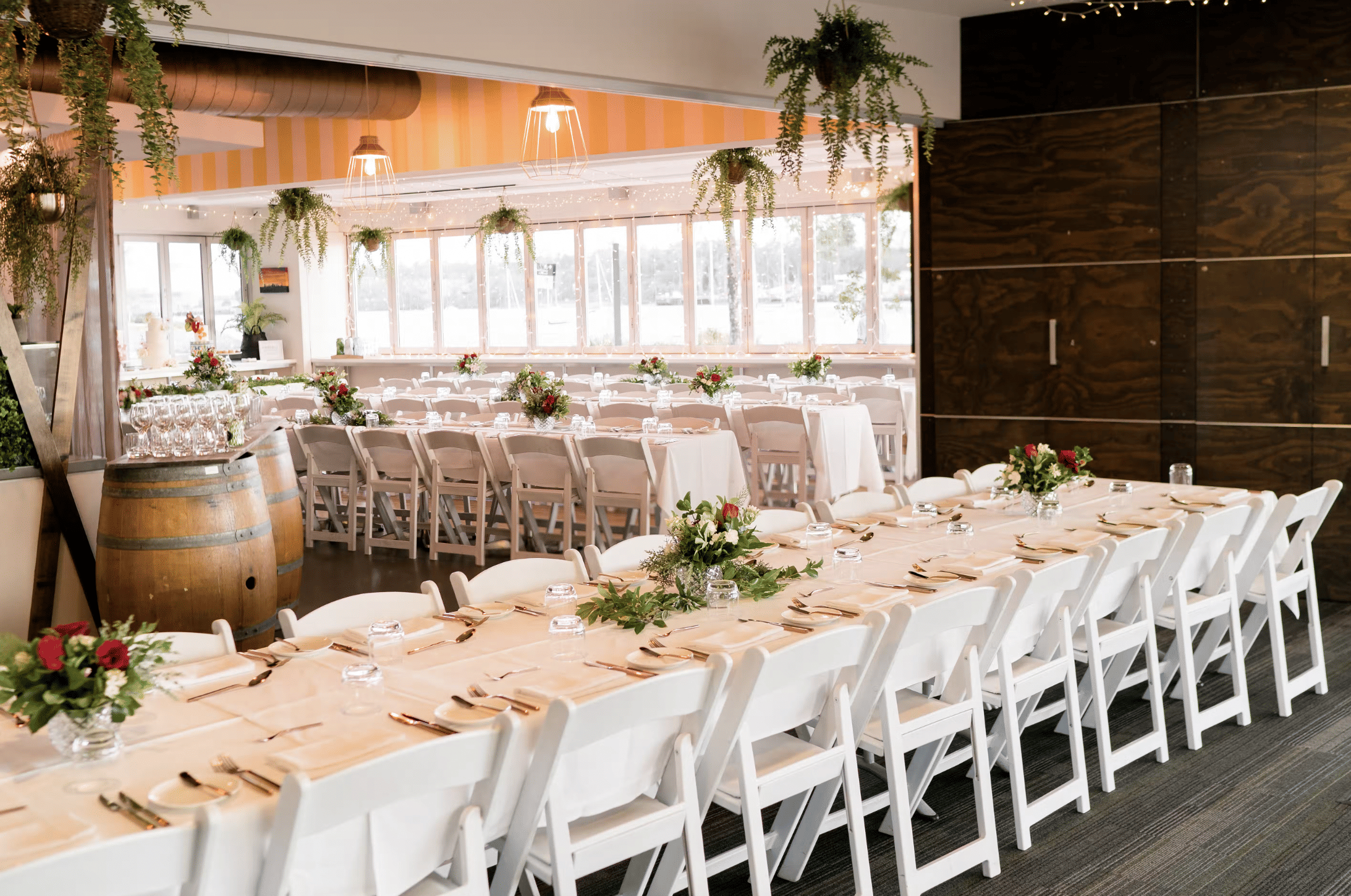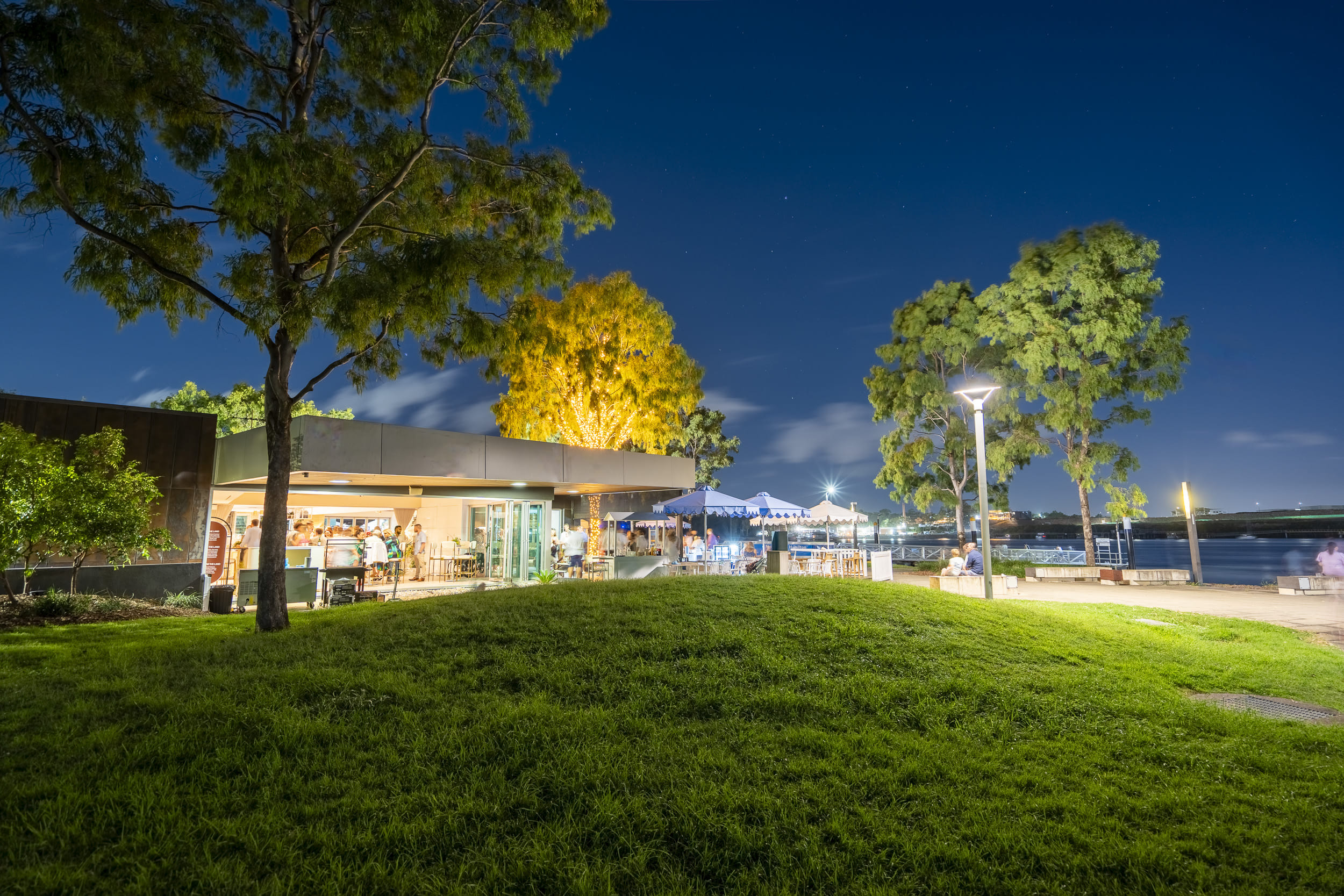 Step aboard the MV Baroness for a luxurious cruise along the Brisbane River, where you can unwind, take in breathtaking views, and enjoy the perfect weather in style. This beautifully crafted waterside venue, located in Murrarie, blends old-world charm with modern elegance. With its bow seating and an open-air top deck, it offers a seamless experience for 135 guests who want to enjoy the river at their own pace. Inside, the MV Baroness is designed with a minimalist touch, featuring sleek wooden details and deep blue cushions that mirror the hues of the river below, creating a calm and inviting atmosphere.