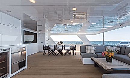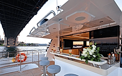 Host your next special event on the flagship of YOT Club’s fleet, the world’s first superyacht entertainment venue. The futuristic-looking vessel is 115ft long and 75ft wide boasting two bars, a fully operational restaurant and plenty of options for seating across the deck. This luxury floating oasis is a truly one-of-a-kind venue and can host up to 399 guests in a cocktail style or 180 guests in a sit-down dinner.