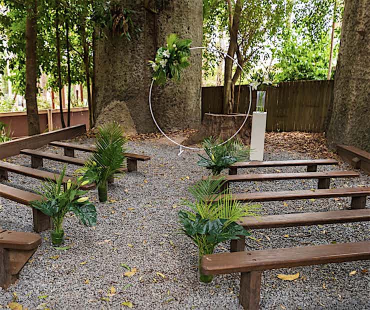 The Boatshed Bar & Grill at Sea World Resort offers a dreamlike wedding venue on the water’s edge, with stunning views of the ocean and Southport skyline. The rustic, semi-covered space features raw wooden tables and benches, and can be arranged with cocktail tables for a casual vibe or large circular tables for an elegant touch. With a capacity for up to 180 guests, this hidden gem combines a picturesque backdrop with exceptional food and cocktails, making it the perfect location for an unforgettable celebration. The culinary team will ensure your wedding is as delicious as it is beautiful, creating a truly remarkable event.