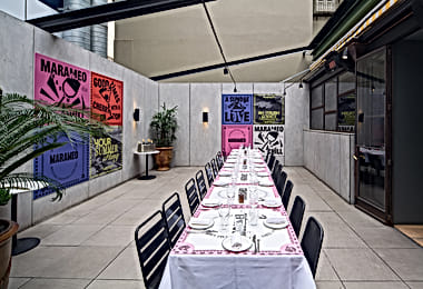 QT Melbourne’s Secret Garden is an intimate rooftop escape, tucked above the pulse of the CBD. This hidden 30th birthday party venue draws guests into a lush, leafy sanctuary where skyline views and vivid colour create an effortlessly alluring atmosphere. Hosting up to 70 guests, the terrace is anchored by Rowena Martinich’s Chromaoasis mural, a vibrant, ever-shifting backdrop that sets the tone for cocktails, conversation, and late-night laughs. Add curated drinks and QT’s signature flair, and you’ve got one of the most exciting venues for your 30th birthday party in Melbourne, just moments from the city’s energy.