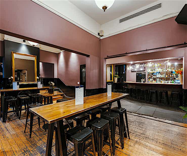 Located in Brunswick East, Aces Bar offers a unique bar with an industrial baroque aesthetic. Take advantage of the whole venue that persists out of the Main Bar, Private Dining Room, Events Space and the Gin Garden. This space is filled with unique decor like hanging dried greenery, dark blue walls combined with turquoise barstools and chairs and golden details all over the Aces Bar. Get together with up to 150 guests for a memorable celebration and dance the night away.
