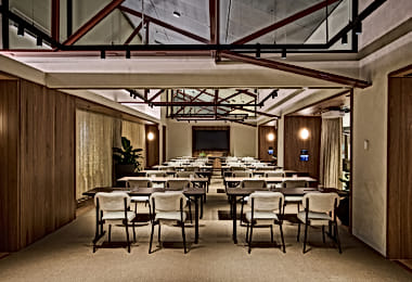 Say hello to Emerald, an effortlessly stylish space designed to elevate your next event. Situated in Melbourne’s CBD, you'll find this space on the first floor of Melbourne Place. One of the hotel's largest spots, you'll be treated to 269sqm of space, accommodating up to 300 people. Tones of green and warm terracotta blend perfectly with rich wooden detailing and a dazzling mirrored ceiling. Boasting state-of-the-art AV, Emerald also offers the mirrored Sage Bar for any post-event drinks or networking, alongside an adjoining outdoor terrace with gorgeous views of the city. If you're looking for a hotel that blends bold style with all the facilities you need, look no further than Melbourne Place.
