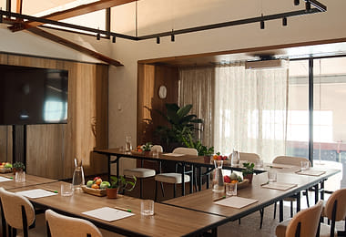 Escape the bustle of Melbourne CBD at Vegie Tribe. Just minutes from Melbourne Central Station, this two-story dining and event space has the ultimate private meeting room. The Upstairs space sits on the second floor, with an interior that’s sure to keep your team inspired. Colourful wall murals and plenty of greenery combine with a light and bright space. With capacity for up to 70 guests, there’s plenty of room for larger meetings or workshops. Big on both fun and functionality, this meeting room is sure to inspire.