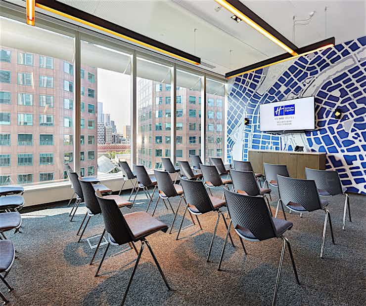 Escape the bustle of Melbourne CBD at Vegie Tribe. Just minutes from Melbourne Central Station, this two-story dining and event space has the ultimate private meeting room. The Upstairs space sits on the second floor, with an interior that’s sure to keep your team inspired. Colourful wall murals and plenty of greenery combine with a light and bright space. With capacity for up to 70 guests, there’s plenty of room for larger meetings or workshops. Big on both fun and functionality, this meeting room is sure to inspire.
