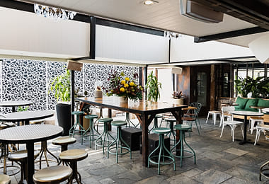 In the heart of Surry Hills, Hotel Harry is a heritage-listed gem. Filled with personality, this cocktail bar blends historic charm with a speakeasy influence. The Lounge is full of old-world charm, combining velvet booths and a vibrant mural with a festoon-lit ceiling. Choose from a curated selection of fresh cocktails, alongside a range of wines and pub classics. Perfect for birthday celebrations and team drinks, The Lounge can accommodate up to 150 guests.
