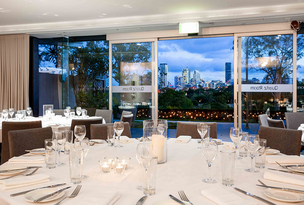 Situated just two kilometres from Brisbane city, Victoria Park is an inner city sanctuary combining golf, wedding, events and bistro facilities in one stunning setting. Victoria Park has 8 award winning function venues on-site with awe-inspiring views, perfect for corporate and private events as well as weddings. The Quartz is a beautiful and intimate function room ideal for up to 60 guests seated or 80 cocktail style. Opening out onto the tree-lined golf course, this stylish area offers a relaxed setting for corporate and private events in Brisbane. The Quartz room is great for private parties, business functions, meetings, conferences and presentations. This beautiful venue features floor to ceiling windows, a guest lounge area, private bar, private terrace with city and golf course views and a permanent dance floor. The Quartz is perfect for: Cocktail Party venue Brisbane | Birthday venue Brisbane | Wedding venue Brisbane | Engagement party venue Brisbane | Baby shower venue Brisbane | Private Dining Room Brisbane | Presentation venue Brisbane | Networking venue Brisbane | Conference venue Brisbane | Corporate Function venue Brisbane | Christmas Party venue Brisbane