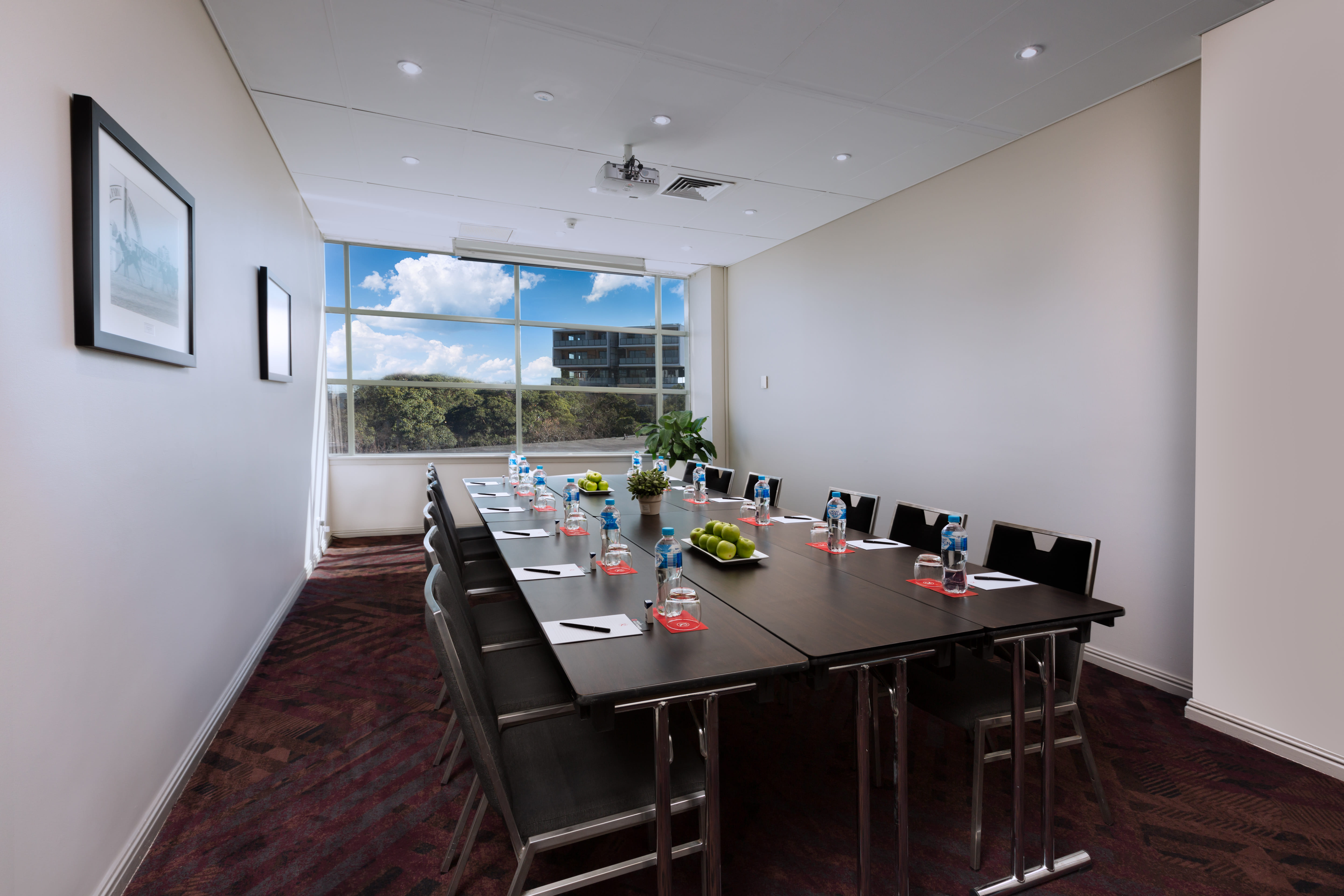 Located in Sydney’s West, Rydges Parramatta offers modern and spacious accommodation for both leisure and business travellers. The hotel is conveniently located across from Rosehill Gardens Racecourse and is a short drive from the bustling Parramatta CBD. Rydges Parramatta offers a collection of ten conference and event venues perfect for small to large corporate or private events. All venues have various options for setup, spacious breakout areas, event catering options, theming and entertainment options, and state-of-the-art audiovisual equipment. Carbine is the only meeting room which features a large permanent boardroom that can seat up to 14 guests. This room is a popular choice for intimate meetings and workshops. Carbine is perfect for: Workshop venue Sydney | Meeting room Sydney | Presentation venue Sydney | Corporate Function venue Sydney