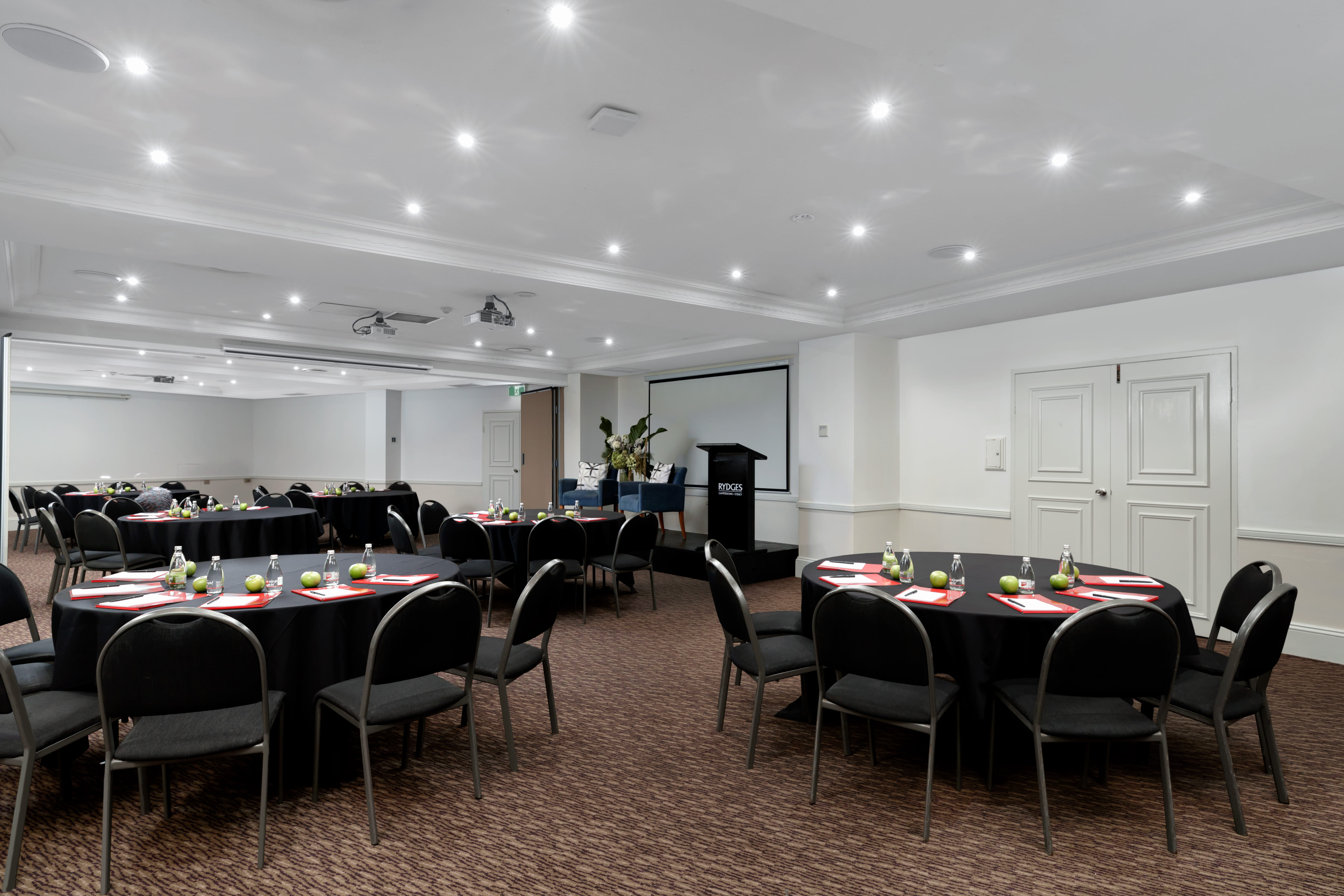 In the heart of Sydney's Inner West, Rydges Camperdown's five conference venues offer a range of meeting and event spaces to suit all needs. Conveniently located in the hustle and bustle of Sydney's vibrant CBD, Rydges Camperdown is within walking distance of Royal Prince Alfred Hospital, Sydney University and is on the doorstep of Newtown. Bligh AB is the largest of the Camperdown Function Rooms and offers a spacious location for your next conference or social gathering in Sydney’s Inner West. It can accommodate up to 110 guests. Bligh AB is made up of two combined function rooms; Bligh A and Bligh B, which can be booked individually for smaller events and breakaway rooms, or as one large room. Its brand new state of the art AV equipment offers three in-built data projectors and screens and an in-built sound system with easy connectivity to your phone, laptop or PA system. Bligh AB is ideal for an array of events. Whether it’s a breakfast meeting, day conference, luncheon, gala dinner or an intimate wedding, the Rydges Camperdown events team will make it work. Bligh AB is perfect for: Cocktail Party venue Sydney | Birthday venue Sydney | Wedding venue Sydney | Engagement party venue Sydney | Baby shower venue Sydney | Workshop venue Sydney | Private Dining Room Sydney | Presentation venue Sydney | Networking venue Sydney | Conference venue Sydney | Corporate Function venue Sydney | Christmas Party Venue Sydney