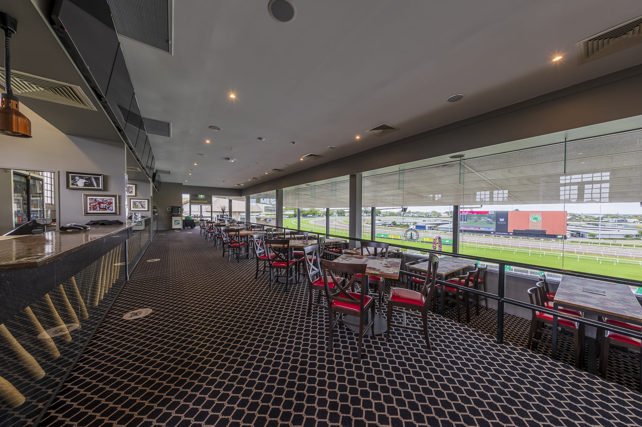 Established in 1865, Eagle Farm Racecourse had it's racing roots in the early settlements with the first settlers heading to the track to enjoy a punt on the horses. The venue boasts world-class facilities and features over 35 function spaces, with most having been recently refurbished including the brand new Society Rooftop bar. The Kentucky Bar is located on the second level of the Public Grandstand. With fantastic glass views of the Winning Post. This space is one of prime locations on course to catch Racing action and is a great setting for cocktail events, special events and networking and has capacity for up to 120 guests. Eagle Farm Racecourse is perfect for: - Cocktail Party venue Brisbane - Birthday venue Brisbane - Wedding venue Brisbane - Team activity venue Brisbane - Engagement party venue Brisbane - Workshop venue Brisbane - Meeting room Brisbane - Private Dining Room Brisbane - Presentation venue Brisbane - Networking venue Brisbane - Conference venue Brisbane - Corporate Function venue Brisbane - Christmas Party venue Brisbane