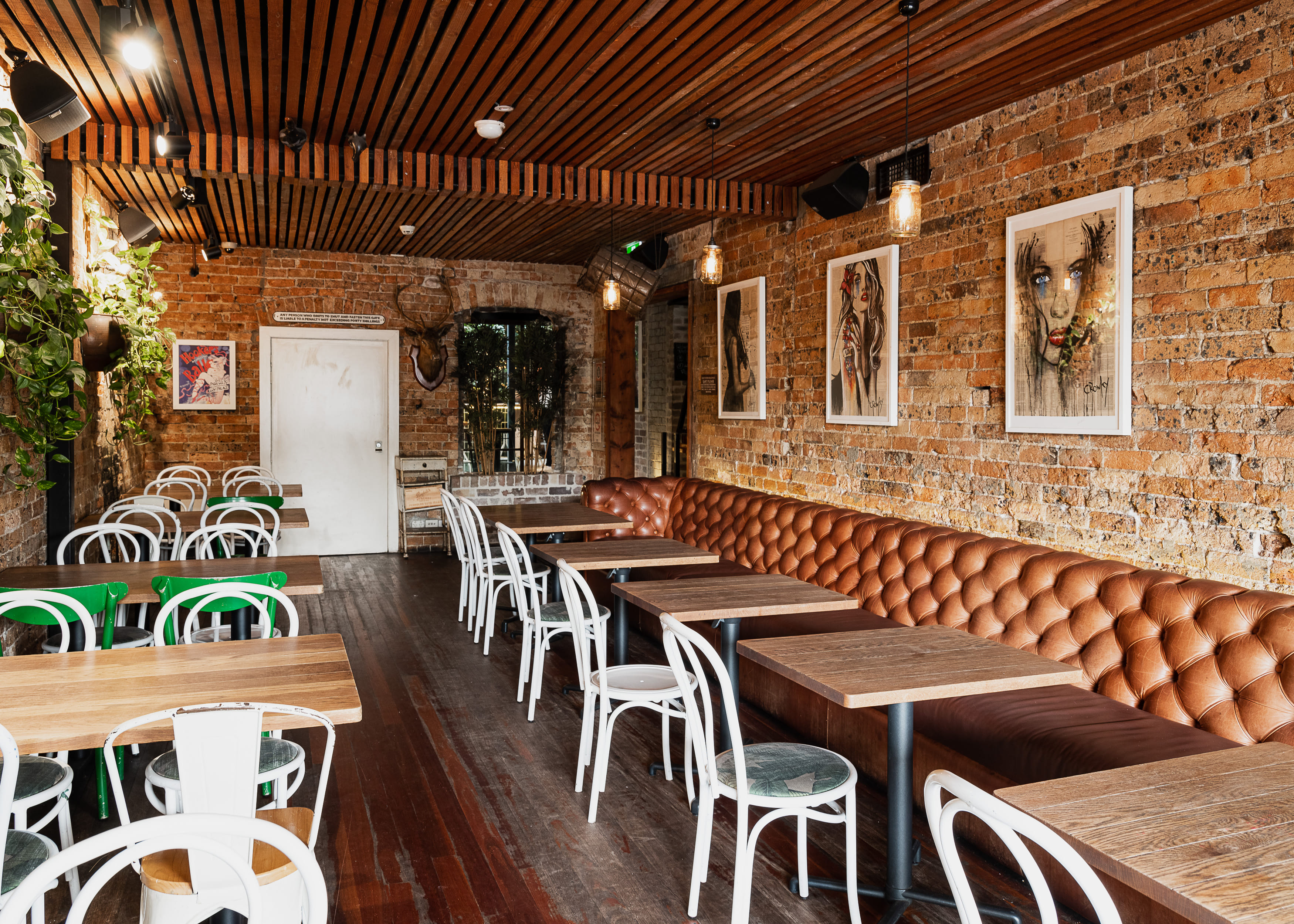 The Rose of Australia Hotel is Sydney's inner west Institution. This venue is the epitome of all that is great and is injected with a cool contemporary feel to create unique spaces & opportunities to hold your celebrations, gatherings or special events. Whether it be work drinks, birthday party or weddings – the hotel has a functions team that can tailor a package that will work for you and take all the pressure out of organising. The Rose of Australia Hotel has a variety of eight spaces that can cater for small to large groups, child friendly, sit down or stand up cocktail, casual or informal. The resides inside Sydney's famous inner-west institution, which you might know as the Rose of Australia. Opening to the street with classic bi-fold windows, the Vineyard is a ground floor space that is a great location for your next brunch or function. It's spacious enough to hold up to 32 guests for a seated dining function and up to 50 guests for a cocktail style event. The Vineyard is warm and inviting with rustic brickwork, warm lighting and Art from 'Jover', creating an intimate space featuring a 6-meter long chesterfield lounge. The Vineyard is perfect for: Cocktail Party venue Sydney | Birthday venue Sydney | Engagement party venue Sydney | Baby shower venue Sydney | Private Dining Room Sydney | Networking venue Sydney | Corporate Function venue Sydney | Christmas Party venue Sydney