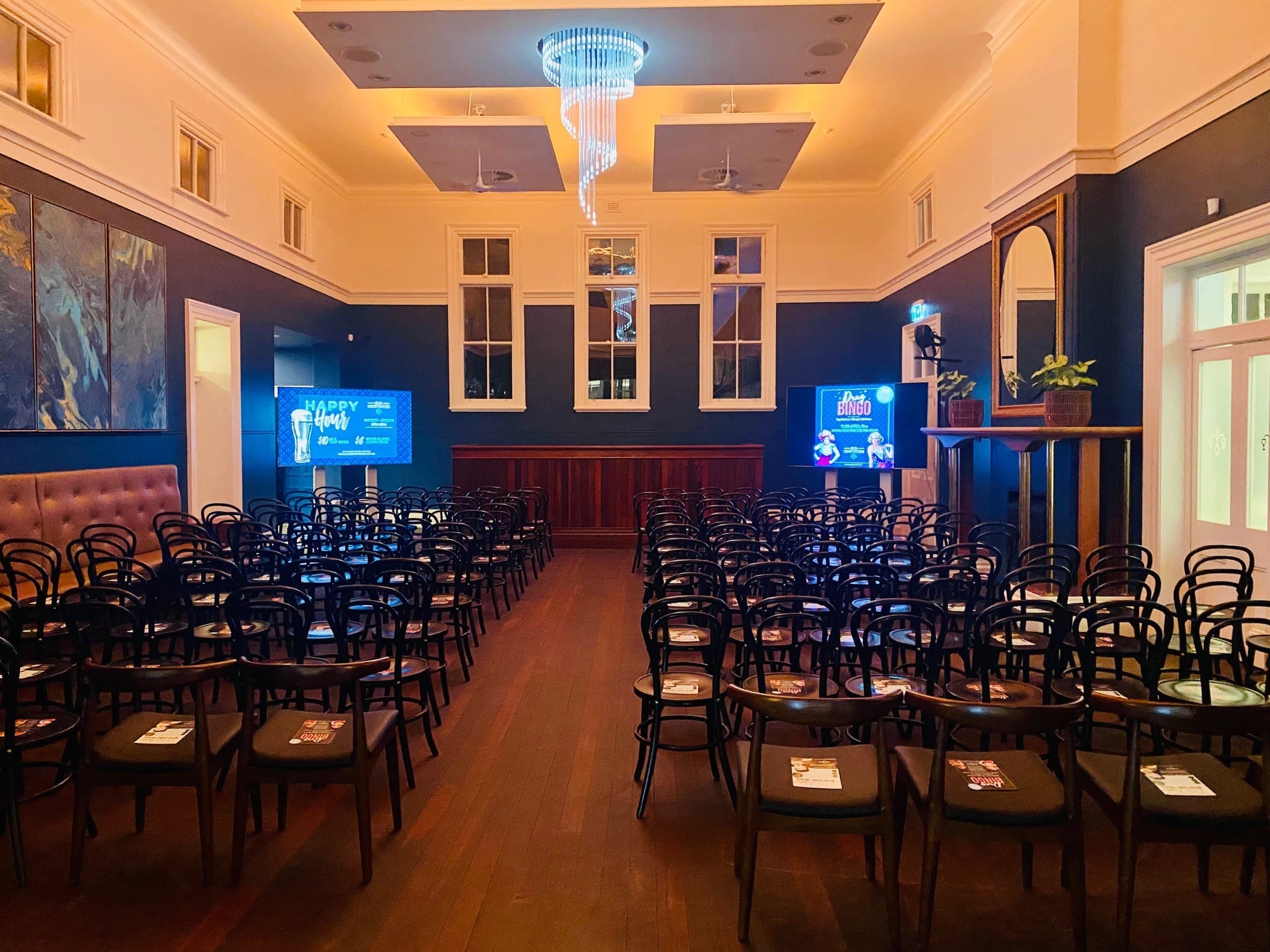 Old Courthouse Fremantle is a heritage-listed building that is the ideal place to add some wow to your event, whilst maintaining that welcoming and laid back feeling that people love about Fremantle. This venue has six diverse function spaces available to cater for most event types and event sizes. The Civil Court is located inside the Old Courthouse. The venue is packed with heritage features, including high ceilings, a working fireplace and the original Magistrates Benches. These benches have a raised section making them perfect for presentations, speeches, a DJ booth or a band. The Civil Court can easily hold up to 150 guests for a cocktail style function and seat up to 120 guests for a seated dining experience. Another Magistrates Bench has been repurposed into a private adjoining bar. With exclusive bookings, the original Jury Room, which has a small room off the Civil Court, can be used as a break out space. Glass folding doors with a curtain allow the Civil Court to be used privately, or you can open the doors up to connect with the other courtroom and double the capacity. The Civil Court is perfect for: Cocktail Party venue Perth | Birthday venue Perth | Wedding venue Perth | Engagement party venue Perth | Baby shower venue Perth | Workshop venue Perth | Private Dining Room Perth | Presentation venue Perth | Networking venue Perth | Conference venue Perth | Corporate Function venue Perth | Christmas Party venue Perth