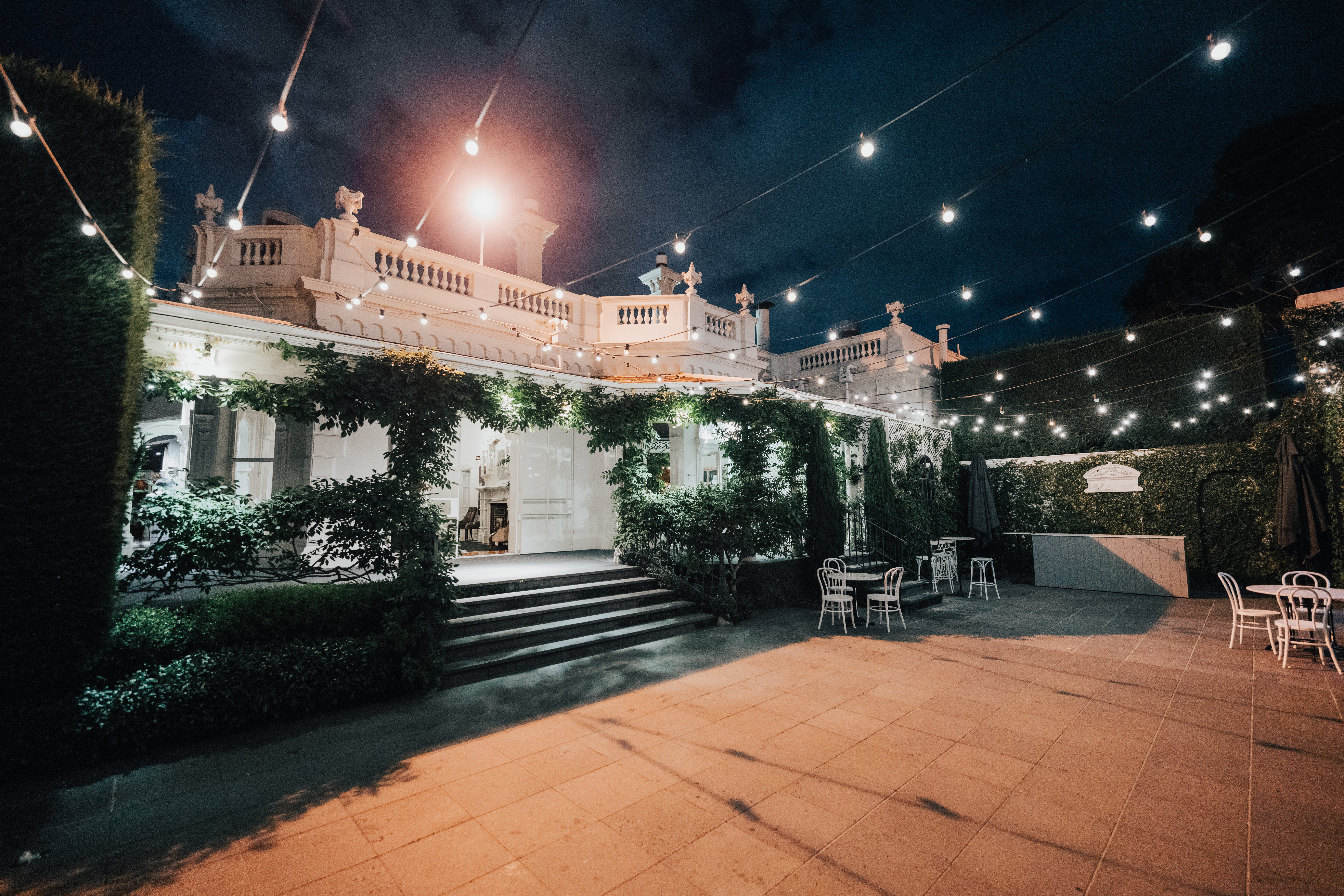 Quat Quatta is a stunning Victorian era mansion as rich in elegance as it is history. Original ballroom features include a parquetry dance floor, sweeping staircase and hand painted windows, all classified by the National Trust. Quat Quatta is located in the beautiful suburb of Ripponlea, a blink away from St Kilda and Melbourne CBD. The boutique venue has been extensively renovated by leading interior designers, Hecker Guthrie. The result is a magical space of soaring ceilings, mood lighting and soft drapery…. all with a contemporary edge. Quat Quatta’s incredible hedging, festoon lighting, bronze fountain and original marble verandah, make the courtyard a romantic and intimate space, perfect for a wedding ceremony and pre-event drinks. Whether you're hosting an intimate occasion for 50 or a wedding bash for 160 guests, with over 30 years of experience in hospitality, Quat Quatta is committed to making every moment memorable. Quat Quatta is perfect for: Cocktail Party venue Melbourne | Birthday venue Melbourne | Wedding venue Melbourne | Engagement party venue Melbourne | Baby shower venue Melbourne | Private Dining Room Melbourne | Networking venue Melbourne | Corporate Function venue Melbourne | Christmas Party venue Melbourne