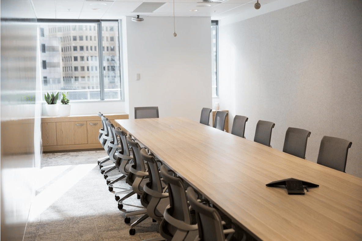 Dexus Place is conveniently positioned in two locations in Sydney CBD. This venue is located in Sydney's CBD and is positioned in the prime spot at Farrer Place. One Farrer is where the high-end financial district meets an edgy design style. The space features dynamic wall configurations, allowing for larger events that cater to up to 180 people, and a spectacular function terrace, which offers amazing views over the city. The Farrer Room is one of Dexus, Farrer Place's smaller-sized meeting spaces with the capacity to hold up to seat up to 20 guests. Dexus Place provides spaces that engage and inspire. Most spaces come with the following features: * High-speed wi-fi * AV (Video & teleconferencing facilities) * Power * Spare hire laptop (upon request) * Whiteboard walls * Flip chart x 1 * Notepads & pens * Nespresso coffee & tea * Filtered water & mints The Farrer Room at Dexus Place is perfect for: Workshop venue Sydney | Meeting room Sydney | Presentation venue Sydney
