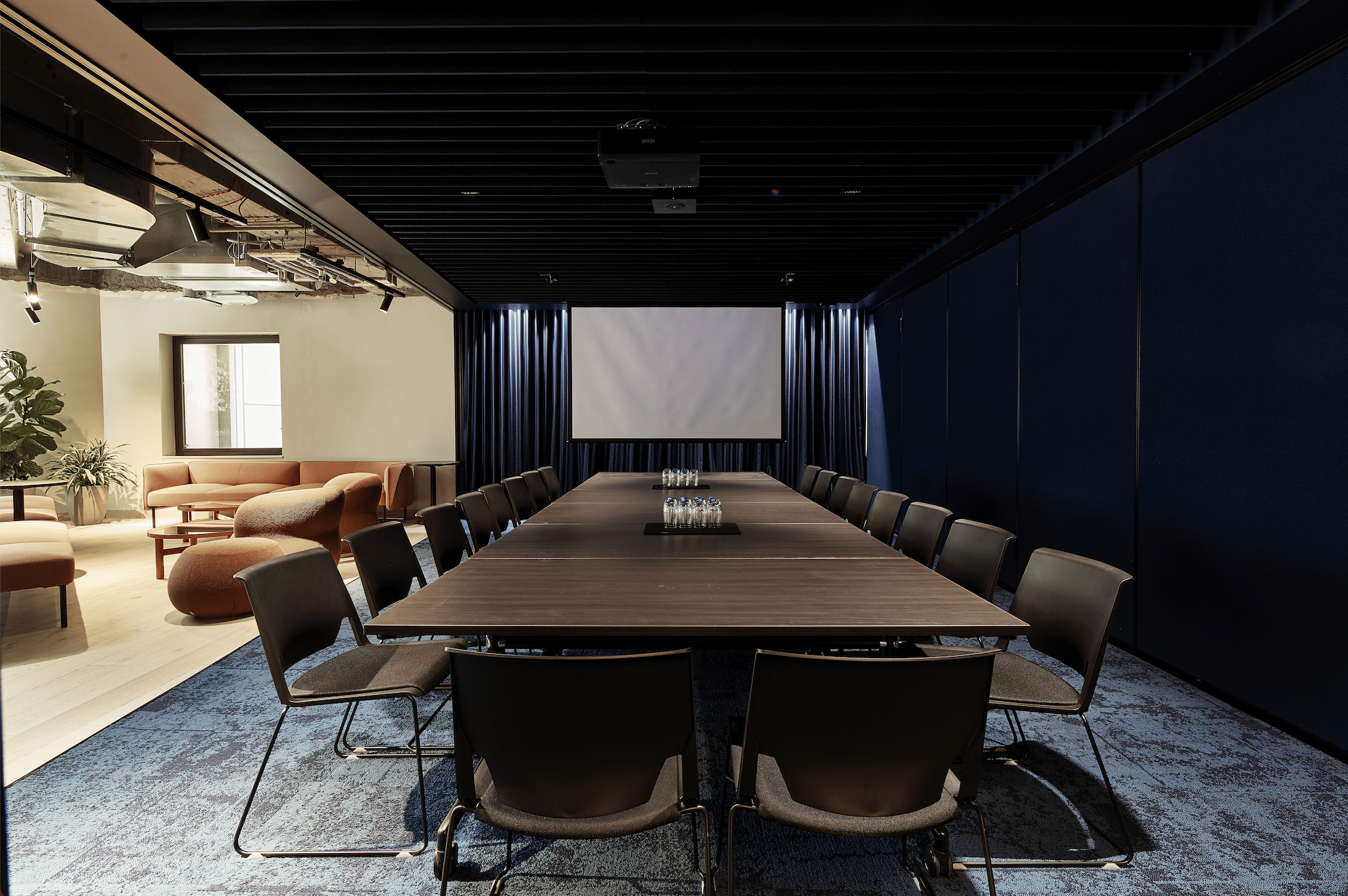 Nestled within Melbourne’s premier commercial and luxury retail precinct is the newly revitalised North Tower at 80 Collins Street. Dexus Place is located across levels 6 and 7, with brand-new premium meeting and event spaces, an outdoor communal terrace and office suites available on short-term flexible leases. North Tower 80 Collins Street is a consciously built premium A-Grade office building and proudly holds a 5-star NABERS Energy and 5-star NABERS water rating. You’ll be in good company with over 15 international and Australian retail and dining brands on your doorstep. Onsite you will also find the Next Hotel, a new 255 room boutique hotel with a restaurant, café, bar and meeting spaces. Whether you choose to walk, drive, bike or catch public transport, their central location and onsite end-of-trip facilities take the pressure off your commute. Exhibition 03 + BL is one of Dexus Collins Street's larger-sized event spaces that can be combined. The combined Exhibition 03 + BL has the capacity to hold up to 75 guests for a cocktail-style party. Dexus Place provides spaces that engage and inspire. Exhibition 03 + BL at Dexus Place is perfect for: Team activity venue Melbourne | Creative venue Melbourne | Workshop venue Melbourne | Meeting room Melbourne | Presentation venue Melbourne | Conference venue Melbourne