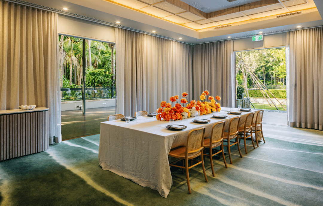 Nestled in 45-acres of magical subtropical rainforest, Crystalbrook Byron is a celebration of nature, responsible luxury accommodation and the local environment. Bring nature into your next meeting. Wild Orchid feature plenty of natural light, with doors opening to a rainforest verandah and garden. 108sqm | 9m (l) x 12m (w) x 3.76 (h) | Max capacity: 80 Wild Orchid Room is perfect for: Workshop venue Byron Bay | Meeting room Byron Bay | Private Dining Room Byron Bay | Presentation venue Byron Bay | Networking venue Byron Bay | Conference venue Byron Bay | Corporate Function venue Byron Bay