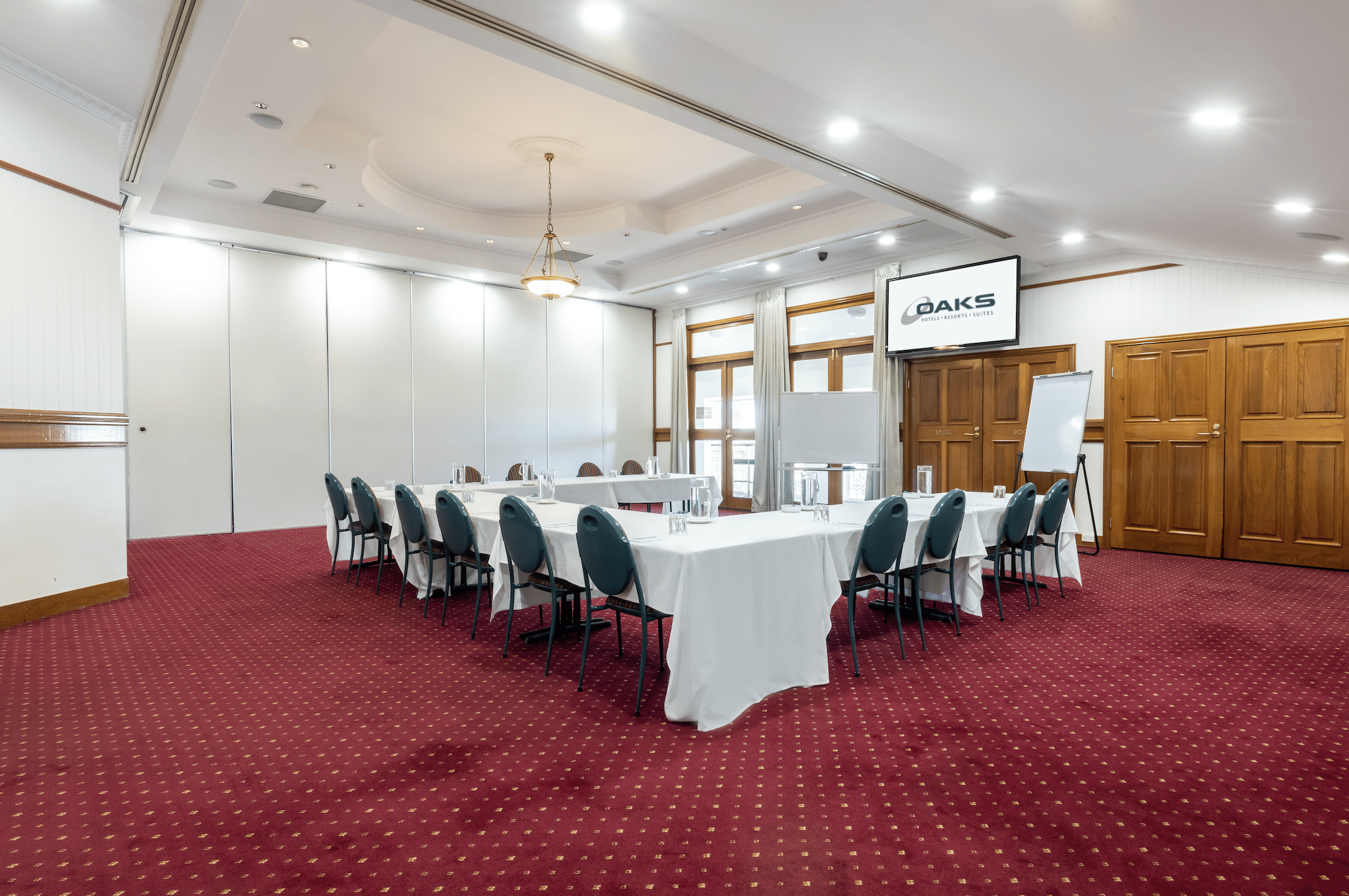 Oaks Gladstone hotel is the premier choice for both leisure and business travellers looking to indulge a little with modern rooms equipped with kitchens and first-class on-site facilities including a restaurant, swimming pool and extensive conference and event facilities. Explore Oaks Gladstone hotel rooms, facilities and offers below. The dedicated event team strive to exceed their guest's expectations by providing great food and beverage with fantastic customer service. All their function rooms enter out onto their gorgeous wrap-around balcony area which boasts incredible views of the CBD & Harbour creating the perfect break-out space and adding atmosphere to your event. The Rockefeller room is a rectangle-shaped room that also welcomes natural light and opens out onto the balcony. Curtains can be drawn when using the 70-inch HDMI television and in-house audio entertainment system. This room is perfect for smaller functions that do not require a dance floor, as guests can instead make use of the nearby bar and foyer area. The Rockefeller Room is perfect for: Cocktail Party venue Gladstone | Team activity venue Gladstone | Workshop venue Gladstone | Meeting room Gladstone | Presentation venue Gladstone | Networking venue Gladstone | Conference venue Gladstone | Corporate Function venue Gladstone | Christmas Party venue Gladstone | Party venue Gladstone