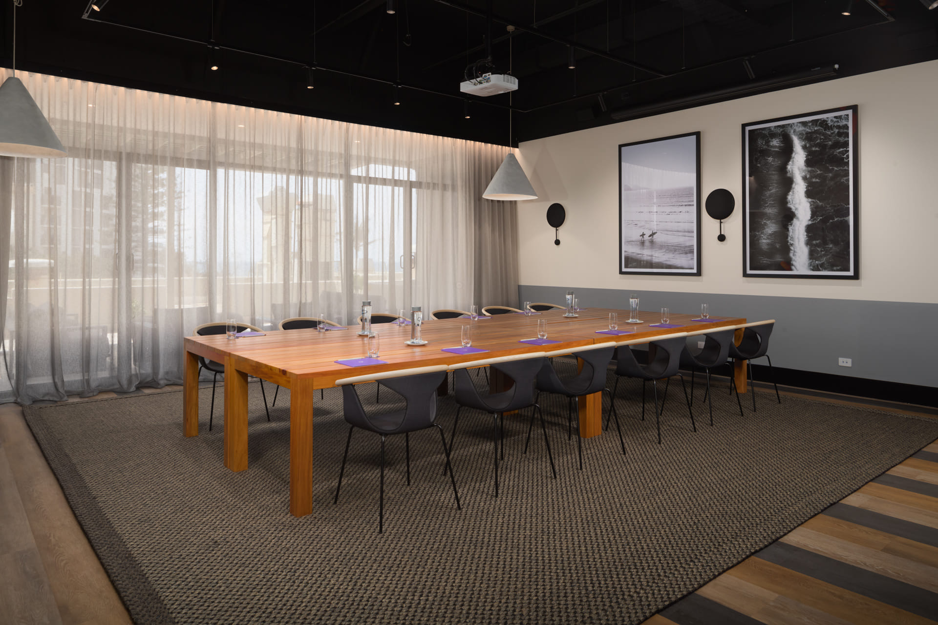 The sun is up on the reimagined QT Gold Coast. Is this the chicest place you’ll ever walk sand through? Unlace yourself to barefoot indulgence and oceanfront deco, dripping with the promise of a never-ending summer. From surf to strategy, board meetings take on new meaning as work and pleasure collide on the Coast. Settle in for brainstorms at the pinnacle of productivity on Level 2. Longboard is the Gold Coast’s favourite spot for big breaks and getting down to business in a leisurely setting. Even gnarly negotiations feel like shooting the breeze when you’re surrounded by relaxed design complete with concrete surfaces and industrial trimmings. Set as a boardroom, you can gather 10 execs, or for significant standups, bring in your team of 30 in cocktail style. Longboard is perfect for: Cocktail Party venue Gold Coast | Workshop venue Gold Coast | Meeting Room Gold Coast | Presentation venue Gold Coast | Conference venue Gold Coast