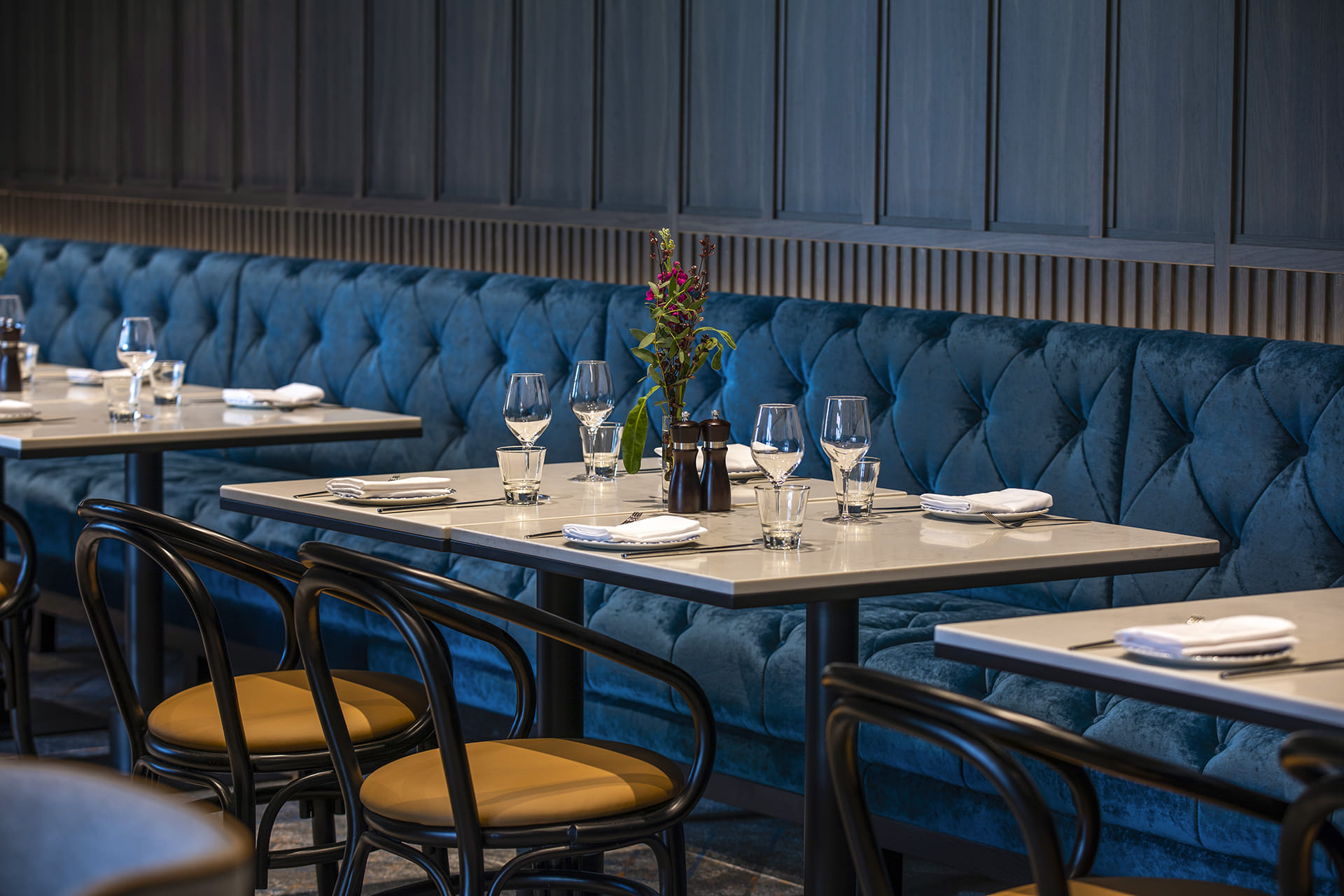 Located in the heart of Melbourne, voco Melbourne Central offers a delightful blend of warm hospitality, modern charm, and captivating views that inspire engaging discussions. The hotel is surrounded by vibrant shopping hubs like the Bourke Street Mall, Melbourne Central Station, and the Emporium. The semi-private dining room Tongs is ideal for seated dining events. It can accommodate up to 30 guests. Guests can separate themselves from the buzz of the restaurant with automatic curtains, or leave them open for views of the restaurant & city lights beyond. Tongs is perfect for: Birthday venue Melbourne | Engagement party venue Melbourne | Private Dining Room Melbourne | Christmas Party venue Melbourne