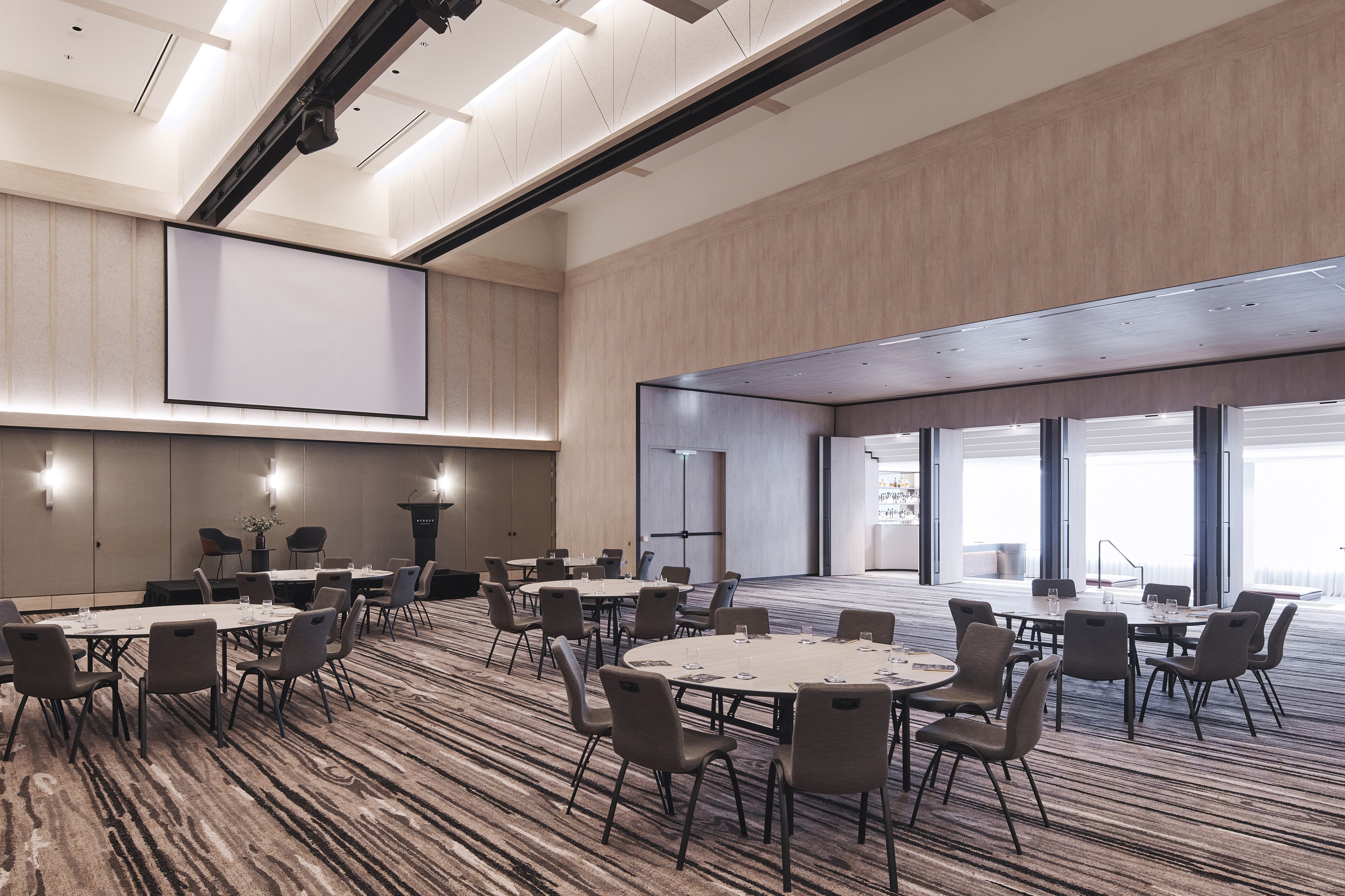 Rydges Melbourne - Award Winning Conference & Event Spaces. The venue has been recognised by the industry as Melbourne's best meeting and event space for two consecutive years and is ranked among the top 10 in Australia. - Top 10 in Australia & No.1 in Victoria 2025 - Best Meeting & Events Space in Melbourne 2025 - Best Meeting & Events Space in Melbourne 2024 One half of the Centre Stage event space – Centre Stage I can host up to 120 guests for a seated breakfast, lunch or gala dinner or 250 cocktail-style and includes a pre-function bar overlooking Exhibition Street and Her Majesty’s Theatre. The state-of-the-art conferencing room is light and bright, with high vaulted ceilings and a 200-inch high-definition projection screen. Perfect for any gathering, whether you’re planning gala dinners, conferences, launches, cocktail soirees or the wedding of your dreams. Rydges Melbourne is home to eleven flexible conference and event venues, spanning 1500sqm across two levels, every element of the property has been transformed, with the inclusion of the best-in-market sound, lighting and music systems. Centre Stage is perfect for: Cocktail Party venue Melbourne | Birthday venue Melbourne | Wedding venue Melbourne | Engagement party venue Melbourne | Workshop venue Melbourne | Meeting room Melbourne | Presentation venue Melbourne | Networking venue Melbourne | Conference venue Melbourne | Corporate Function venue Melbourne | Christmas Party venue Melbourne