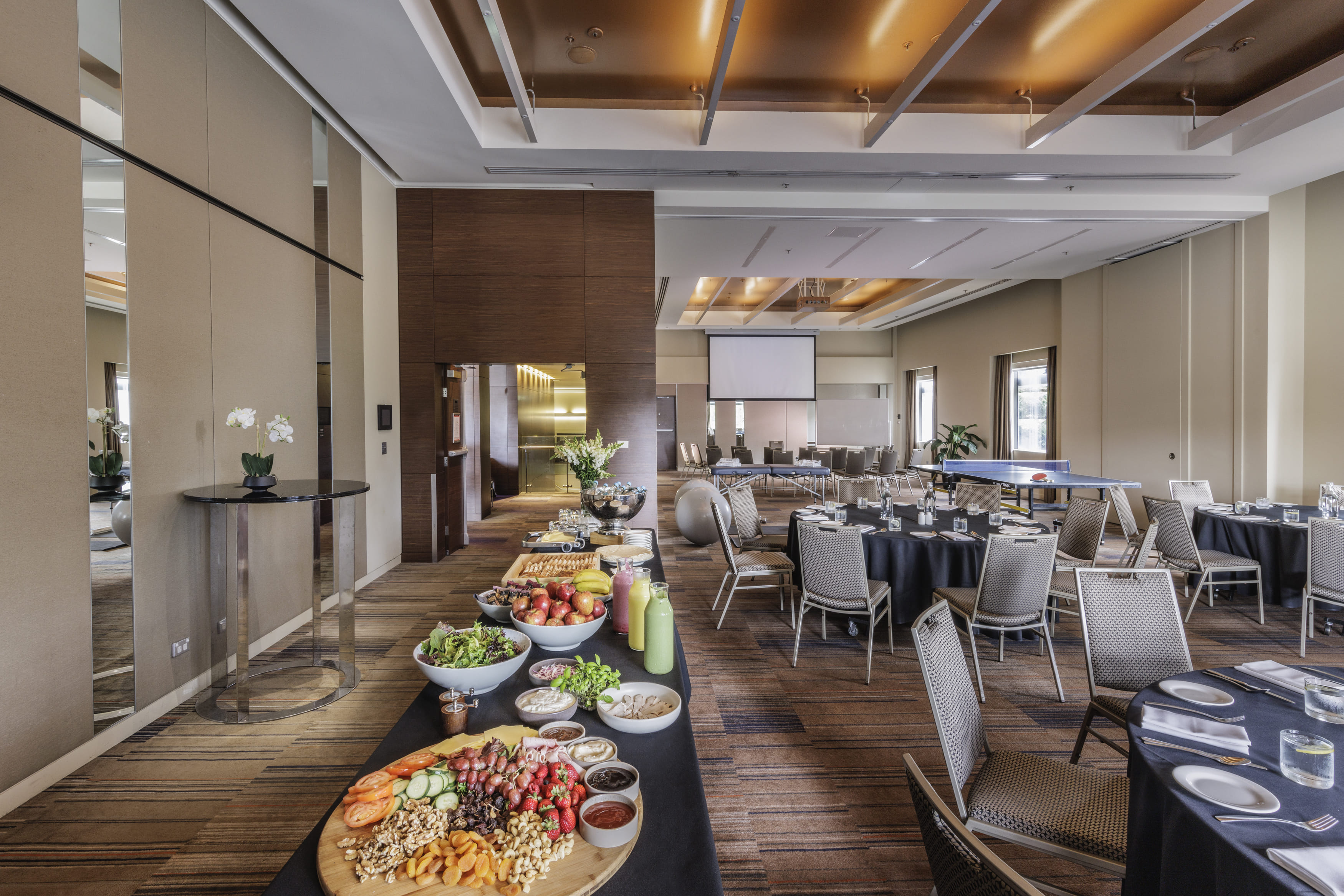 Nexus Room features natural light, contemporary styling and high ceilings. Nexus Room is a versatile function space that can be split into 2, suitable for small to medium scale meetings and conferences. - Premium space suitable for all event types - Exclusive pre-function area - Pillarless versatile space with breakout capabilities - An abundance of natural light with sheer and block-out drapes - Calming treetop views over Sydney Olympic Park