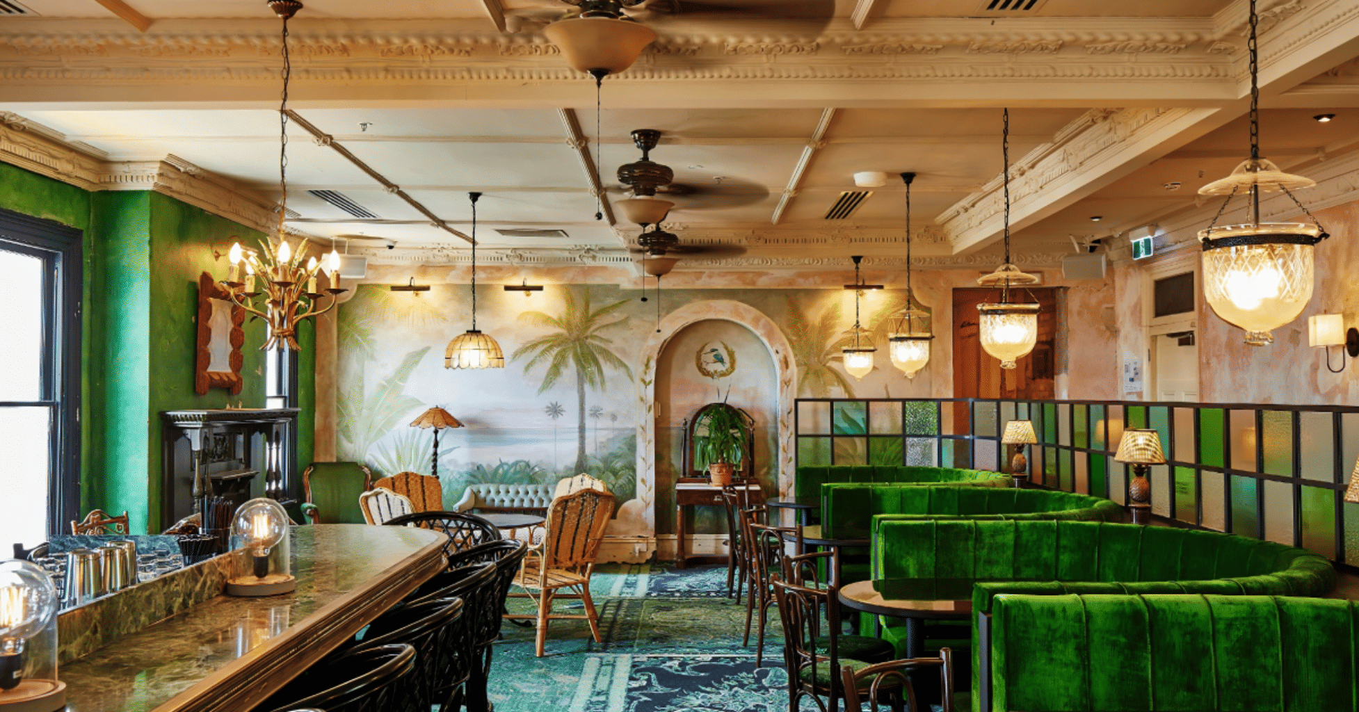Inspired by the Cantonese cook-shops that sprang up throughout St Kilda during Victoria's 1850s gold rush era, Mya Tiger Green Room takes style references from the famous Raffles Hotel in Singapore. Featuring five luxe green velvet booths for your guests to recline in, a hand-painted mural on the far wall, along with a green marble bar slinging vibrant cocktails inspired by Cantonese flavours and a flavour-packed food offering from Head Chef, Sarah Chan. This space is perfect for both social and corporate cocktail parties of 30 to 60 guests with the option of a DJ for entertainment, or seated events of 20 to 40 guests dining on our signature shared 'Banquet Menu. Mya Tiger Green Room is perfect for: Cocktail Party venue Melbourne | Birthday venue Melbourne | Team activity venue Melbourne | Studio venue Melbourne | Creative venue Melbourne | Presentation venue Melbourne | Networking venue Melbourne