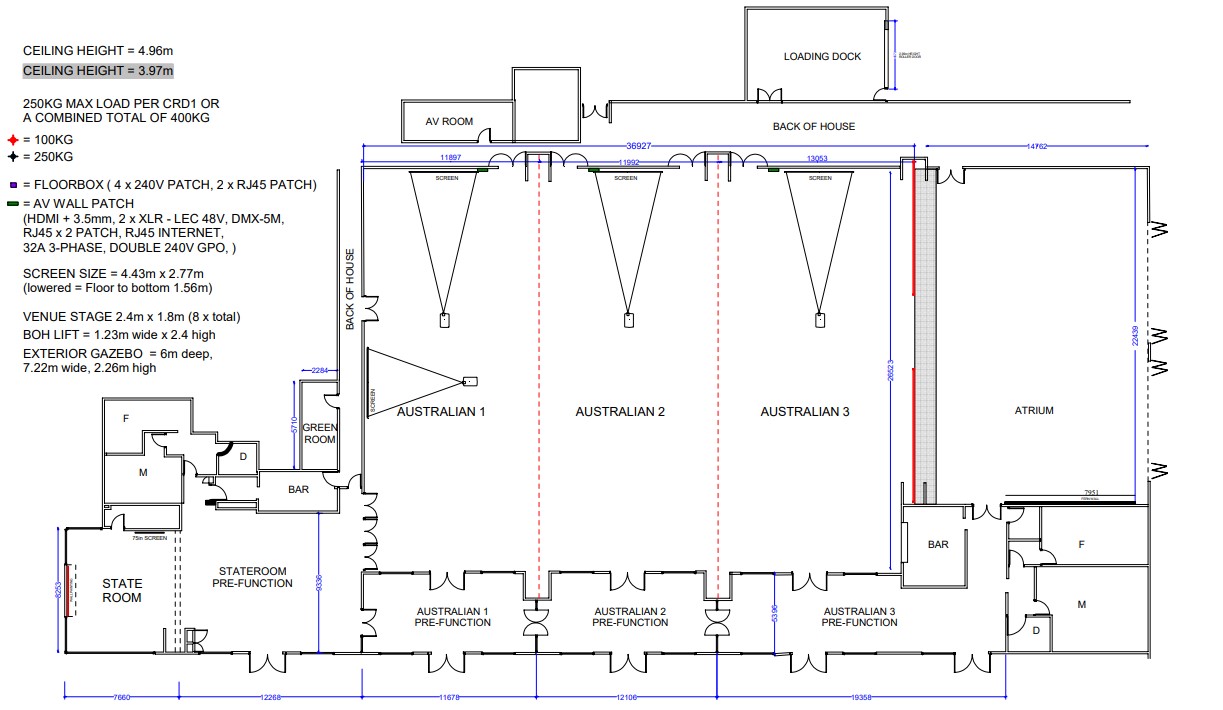 The Atrium, located adjacent to the Australian Rooms, offers the flexibility to be used independently or in conjunction with the neighboring space. This all-weather venue features a retractable roof and a vertical garden, allowing for abundant natural light and versatile event configurations. Ideal for cocktail events, banquets, intimate celebrations, workshops, or presentations, The Atrium provides a dynamic setting for various occasions. One side of the space is lined with glass doors that can be fully opened, ensuring easy setup and takedown. When combined with additional spaces, The Atrium is perfectly suited for trade shows, exhibitions, and car or motor vehicle shows, offering a seamless and adaptable environment for large-scale events. The Atrium is perfect for: Cocktail Party venue Melbourne | Birthday venue Melbourne | Wedding venue Melbourne | Team activity venue Melbourne | Engagement party venue Melbourne | Baby shower venue Melbourne | Networking venue Melbourne | Conference venue Melbourne | Corporate Function venue Melbourne | Christmas Party venue Melbourne