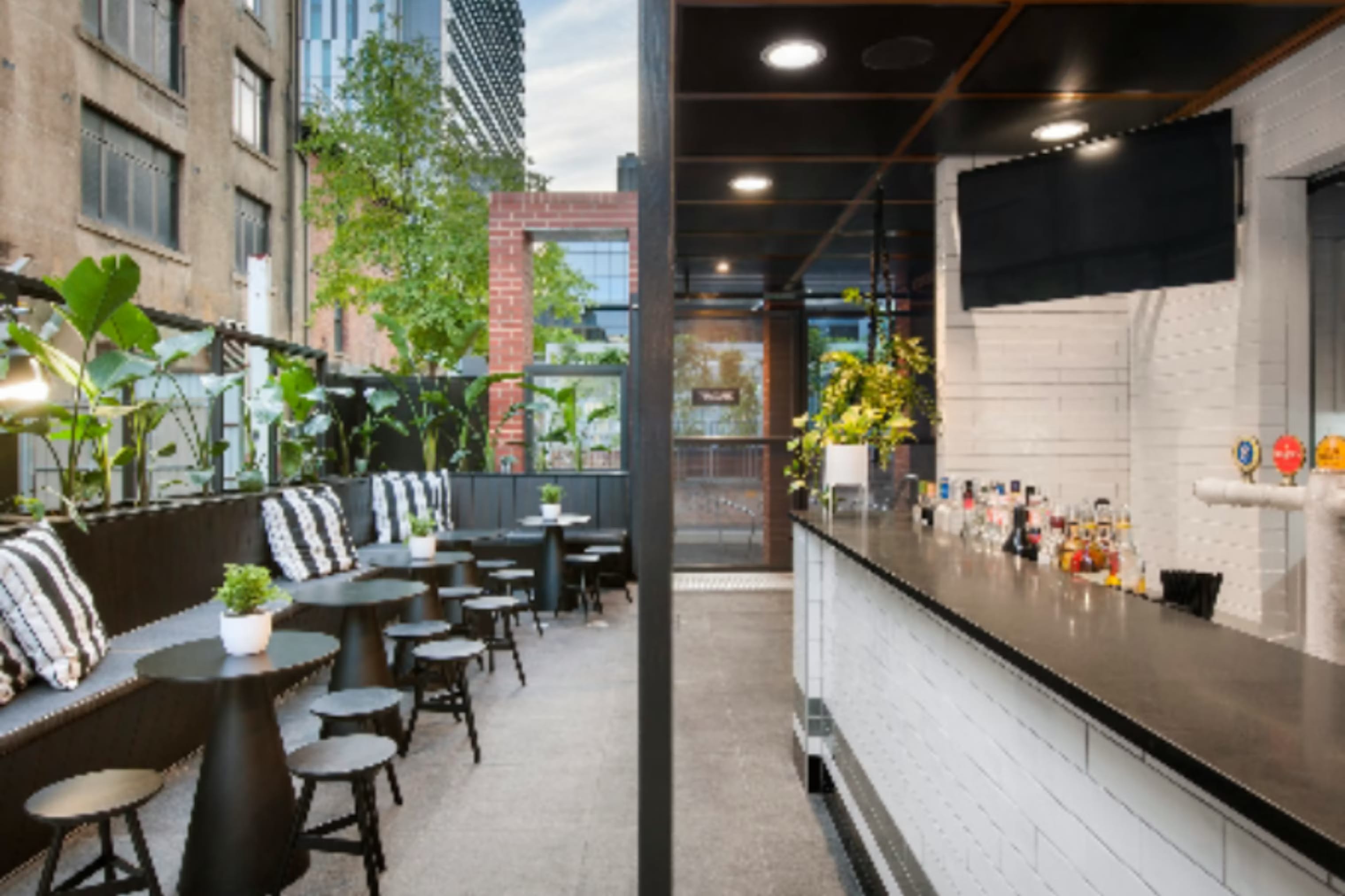 This venue features two distinctive spaces: the Chamber Bar and the Garden Bar. The Chamber Bar offers a bright, relaxed atmosphere with magnificent high benches, booth seating, and dramatic 30-foot high ceilings adorned with classic 1900s plasterwork and pillars. This architecturally designed room creates an uplifting vibe during the day, and at night, the shutters enclose the area to create an intimate space. It can accommodate up to 120 guests, with the option to include the Garden Bar for an additional 190 guests. The Garden Bar is an open-air space encircled by authentic raw brick walls and lush hanging plants. A raised section offers sheltered booths, while bar seating is scattered throughout the space. This vibrant area is ideal for gatherings such as bucks' parties, 21st celebrations, or any occasion to get together with friends. Chamber Bar & Garden Bar is perfect for: Cocktail Party venue Adelaide | Birthday venue Adelaide | Engagement party venue Adelaide | Networking venue Adelaide | Christmas Party venue Adelaide