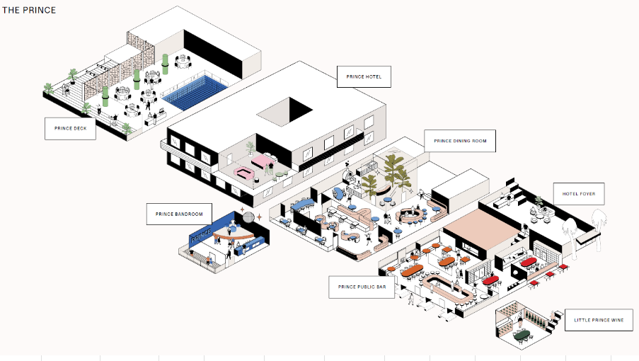 The Prince Hotel, located in the vibrant St Kilda neighborhood of Melbourne, is a beautifully restored Art Deco building that seamlessly blends vintage charm with modern design. The venue boasts a range of spaces, including 39 boutique guest rooms, each thoughtfully designed with contemporary comforts while retaining the building's historic character. The hotel’s public spaces are equally captivating, featuring a mix of classic and modern elements that create a stylish yet welcoming atmosphere. The Prince Dining Room at The Prince Hotel in St Kilda is an elegant and refined space that combines classic design elements with modern sophistication. The dining room is characterized by its luxurious interiors, featuring plush velvet seating, rich wood paneling, and large windows that allow natural light to flood the space, creating a warm and inviting atmosphere. The room is perfect for both intimate gatherings and larger events, with a sophisticated ambiance that enhances the overall dining experience. Prince Dining Room is perfect for: Cocktail Party venue Melbourne | Birthday venue Melbourne | Engagement party venue Melbourne | Networking venue Melbourne