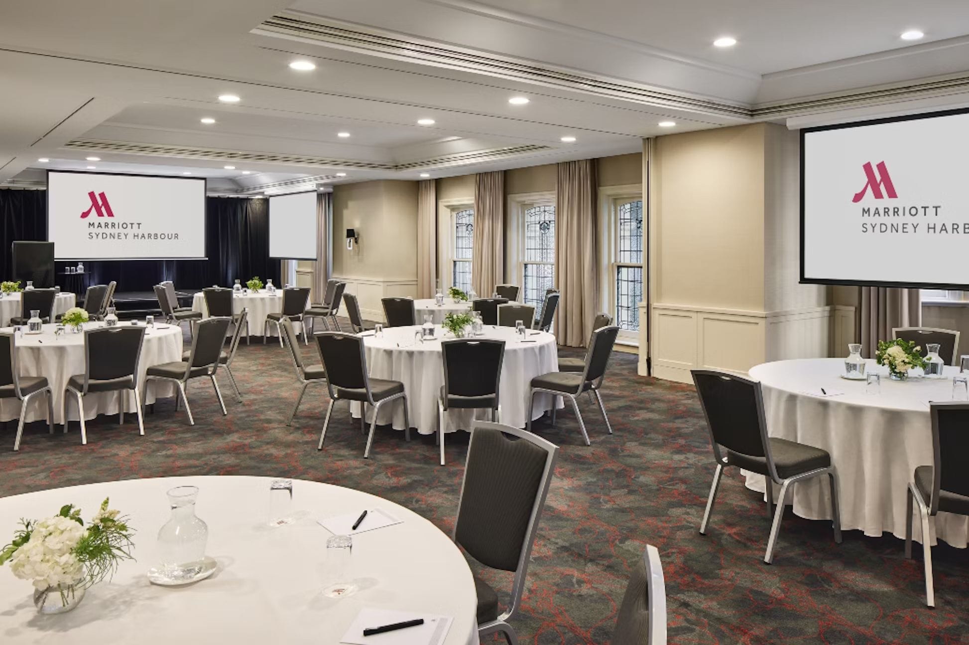 Located at 30 Pitt Street in the vibrant Circular Quay district of Sydney, the Sydney Harbour Marriott Hotel provides an upscale retreat in the heart of the city. Spanning 32 floors, the hotel houses 595 stylishly appointed guest rooms and suites, many of which showcase breathtaking views of iconic landmarks such as the Sydney Opera House, Harbour Bridge, and the city skyline. The interiors are elegantly furnished with a refined color palette of blues, creams, and browns, offering a calm and inviting atmosphere. Guests can enjoy a range of premium amenities, including an indoor swimming pool, a state-of-the-art fitness center, and a tranquil day spa. The Thomas Keneally II Room provides a refined and versatile environment ideal for a range of events. Distinguished by its heritage stained glass windows, the room is bathed in a soft, ambient light and offers charming views of Macquarie Place Park. Outfitted with modern audiovisual equipment—including projectors, screens, microphones, and conference phones—the space supports a seamless and professional event experience. Thomas Keneally II is perfect for: Cocktail Party venue Sydney | Birthday venue Sydney | Wedding venue Sydney | Team activity venue Sydney | Engagement party venue Sydney | Baby shower venue Sydney | Studio venue Sydney | Creative venue Sydney | Workshop venue Sydney | Meeting room Sydney | Private Dining Room Sydney | Presentation venue Sydney | Networking venue Sydney | Conference venue Sydney | Corporate Function venue Sydney | Christmas Party Venue Sydney | Party Boat Sydney