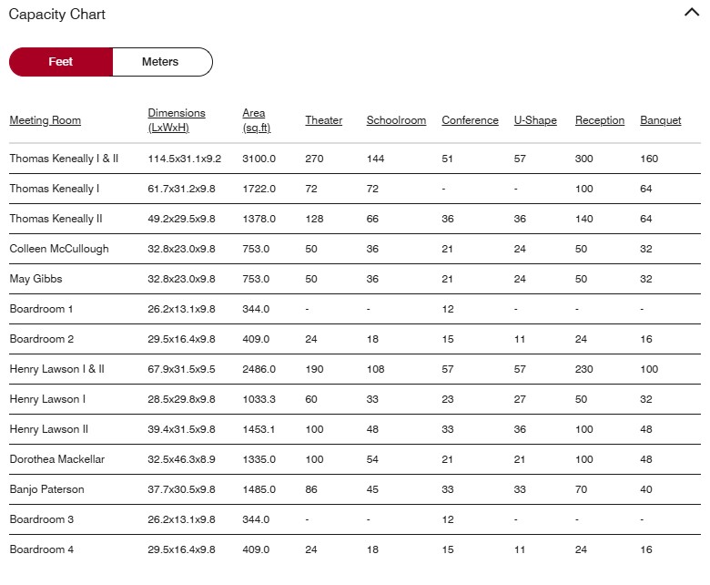Located at 30 Pitt Street in the vibrant Circular Quay district of Sydney, the Sydney Harbour Marriott Hotel provides an upscale retreat in the heart of the city. The interiors are elegantly furnished with a refined color palette of blues, creams, and browns, offering a calm and inviting atmosphere. Guests can enjoy a range of premium amenities, including an indoor swimming pool, a state-of-the-art fitness center, and a tranquil day spa. The Colleen McCullough Room at the Sydney Harbour Marriott Hotel provides a warm and adaptable environment perfectly suited for smaller gatherings. Floor-to-ceiling windows flood the space with natural light, creating an open and welcoming atmosphere. Outfitted with state-of-the-art audiovisual equipment—including projectors, screens, microphones, and conference phones—the venue offers a professional and polished setting for a range of events. Colleen McCullough is perfect for: The Colleen McCullough room features natural light from magnificent floor-to-ceiling windows. Ideally suited for small meetings, these function rooms set well in boardroom, u-shape and classroom configurations.