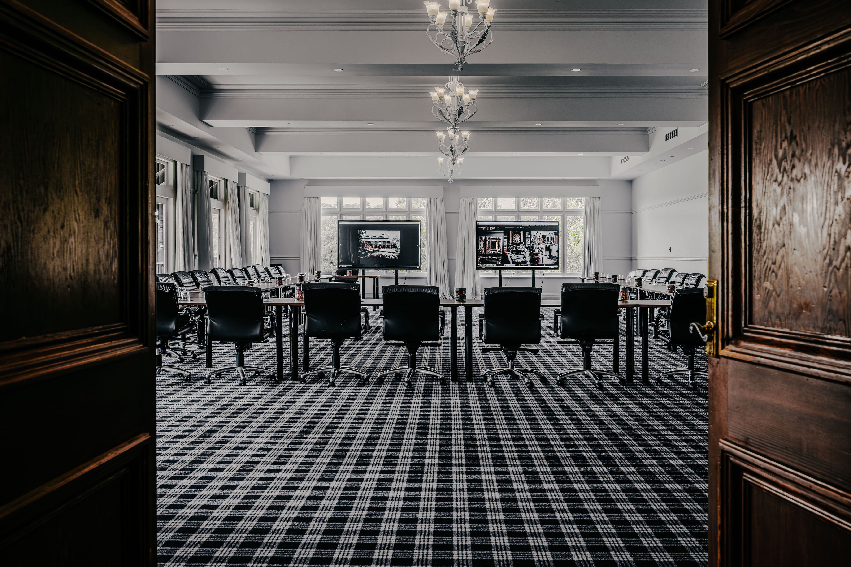 The Renaissance Room at Hotel Bellinzona in Hepburn Springs is a grand and elegant event space, bathed in natural light and adorned with white drapery and vibrant greenery. Its high ceilings and wraparound balcony offer sweeping views of the surrounding forest, creating an inspiring setting for various events. With a capacity to accommodate up to 250 guests, The Renaissance Room is versatile for conferences, meetings, and social gatherings. Nestled in the heart of Victoria’s spa country in Hepburn Springs, Hotel Bellinzona offers a charming and elegant conference venue surrounded by lush gardens and countryside views. The venue features beautifully restored heritage architecture, high ceilings, natural light-filled spaces, and a blend of classic and contemporary interior design, creating a warm and refined atmosphere ideal for retreats, corporate events, and special occasions. The Renaissance is perfect for: Cocktail Party venue Melbourne | Workshop venue Melbourne | Meeting room Melbourne | Presentation venue Melbourne | Networking venue Melbourne | Conference venue Melbourne | Corporate Function venue Melbourne