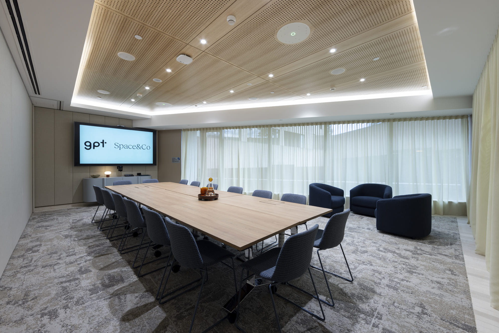 Located on the ground floor of Darling Park Tower One, our versatile workshop space begins with a capacity of 16 people in a boardroom configuration and can be customized to meet a variety of needs. Designed with high-end fittings and a sophisticated aesthetic, this space offers both functionality and elegance, ideal for any event or session. The workshop space can be configured in several ways to fit your requirements: By Itself Boardroom Style: 16 pax Workshop Style: 16 pax Classroom Style: 16 pax When Combined with an Adjacent Space (Two Workshops) Boardroom Style: 32 pax Theatre Style: 60 pax Event (Standing): 80 pax Classroom Style: 24 pax Workshop (Pods): 48 pax U-Shape: 16 pax When all three workshops are combined (Darling Park Hall) Boardroom Style: 48 pax Theatre Style: 100 pax Event (Standing): 150 pax Classroom Style: 36 pax Workshop (Pods): 64 pax U-Shape: 20 pax Our high-quality, soundproof operable walls allow for seamless transitions between configurations, enabling you to scale the space to fit larger sessions or multi-room events with ease. It includes advanced AV connectivity with a large high-definition presentation screen, built-in microphone and speaker hubs, native Teams functionality, and bring-your-own-device (BYOD) capabilities. The room is hearing loop enabled to accommodate all accessibility needs. GPT Space&Co at Darling Park is known for its exceptional service and professional support. A dedicated onsite team is available to welcome guests, resolve technical issues, and ensure meetings run seamlessly - allowing clients to focus on their priorities while all logistical details are expertly handled. Access to the space includes use of well-appointed breakout areas, complete with a premium coffee machine and tea-making facilities. Meeting rooms are thoughtfully prepared with water and mints for attendees, and all visitors benefit from unlimited access to the venue’s high-speed guest WiFi. Additionally, we can assist with catering requests through our partner, Avenue on Sussex, ensuring your meetings are complemented with quality refreshments.