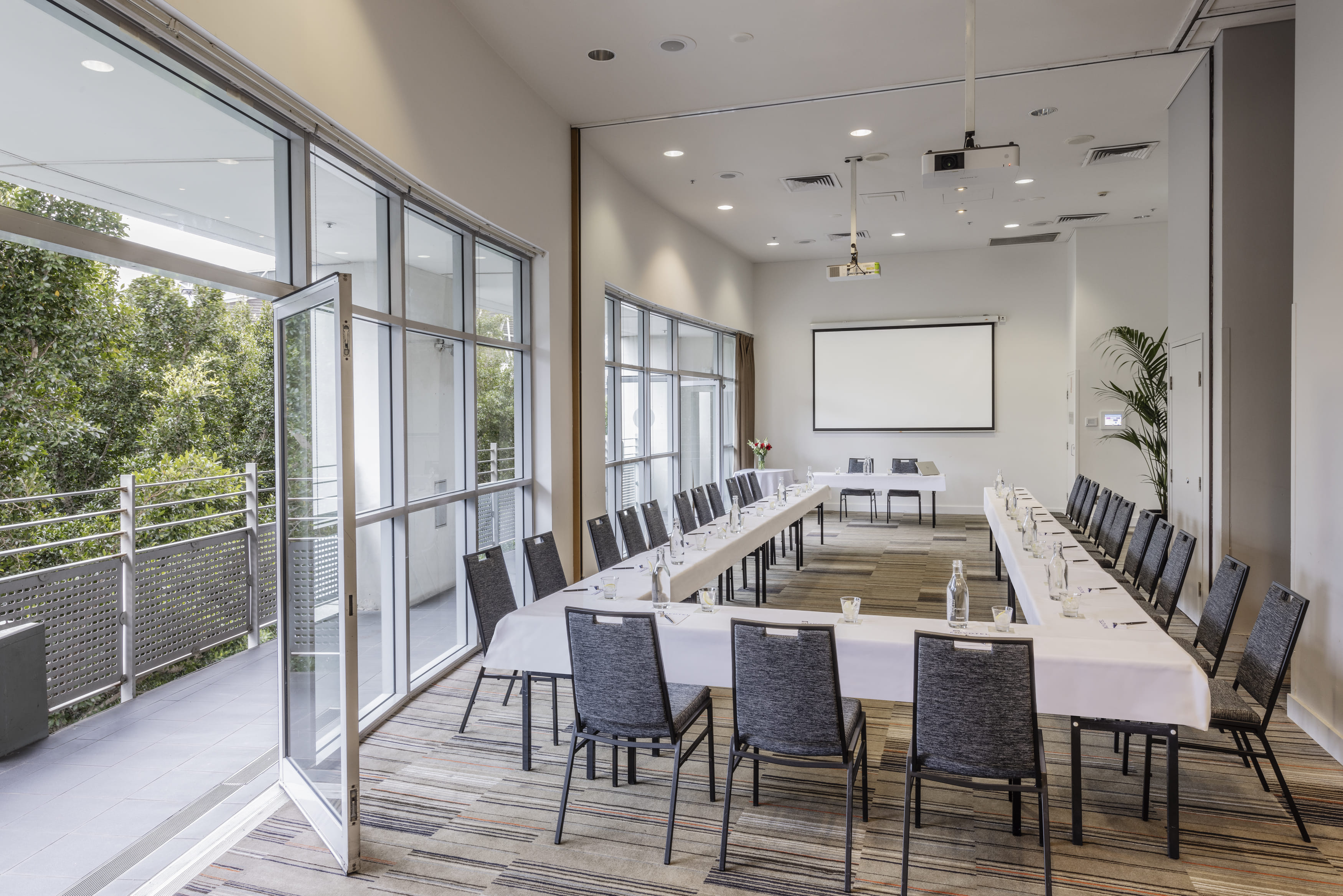 Novotel Sydney Olympic Park is a contemporary hotel located in Sydney Olympic Park, NSW, offering modern accommodation and versatile event facilities in a vibrant precinct. Overlooking key landmarks such as Accor Stadium and Cathy Freeman Park, the venue provides a convenient and well-connected setting for conferences, meetings, and corporate events. Step into the seamless and pillarless expanse of Forest, a versatile room adorned with floor-to-ceiling windows, basking in natural light - an ideal setting for meetings, dinners, or as a breakout area for large events. The Forest Room also features a wrap-around balcony that offers enchanting views of Accor Stadium and Sydney Olympic Park. The Forest room creates an atmosphere of openness and connection with its surroundings, providing a refreshing backdrop for any occasion. Choose to utilise Forest as one expansive room for larger gatherings or easily split it into two smaller rooms for a more intimate setting. The adaptability of the space ensures that it can be tailored to suit the specific needs and scale of your event. Forest invites you to experience a seamless blend of functionality and aesthetics in a space designed to elevate your event experience. Forest Room 1 & 2 is perfect for: Workshop venue Sydney | Meeting room Sydney | Presentation venue Sydney