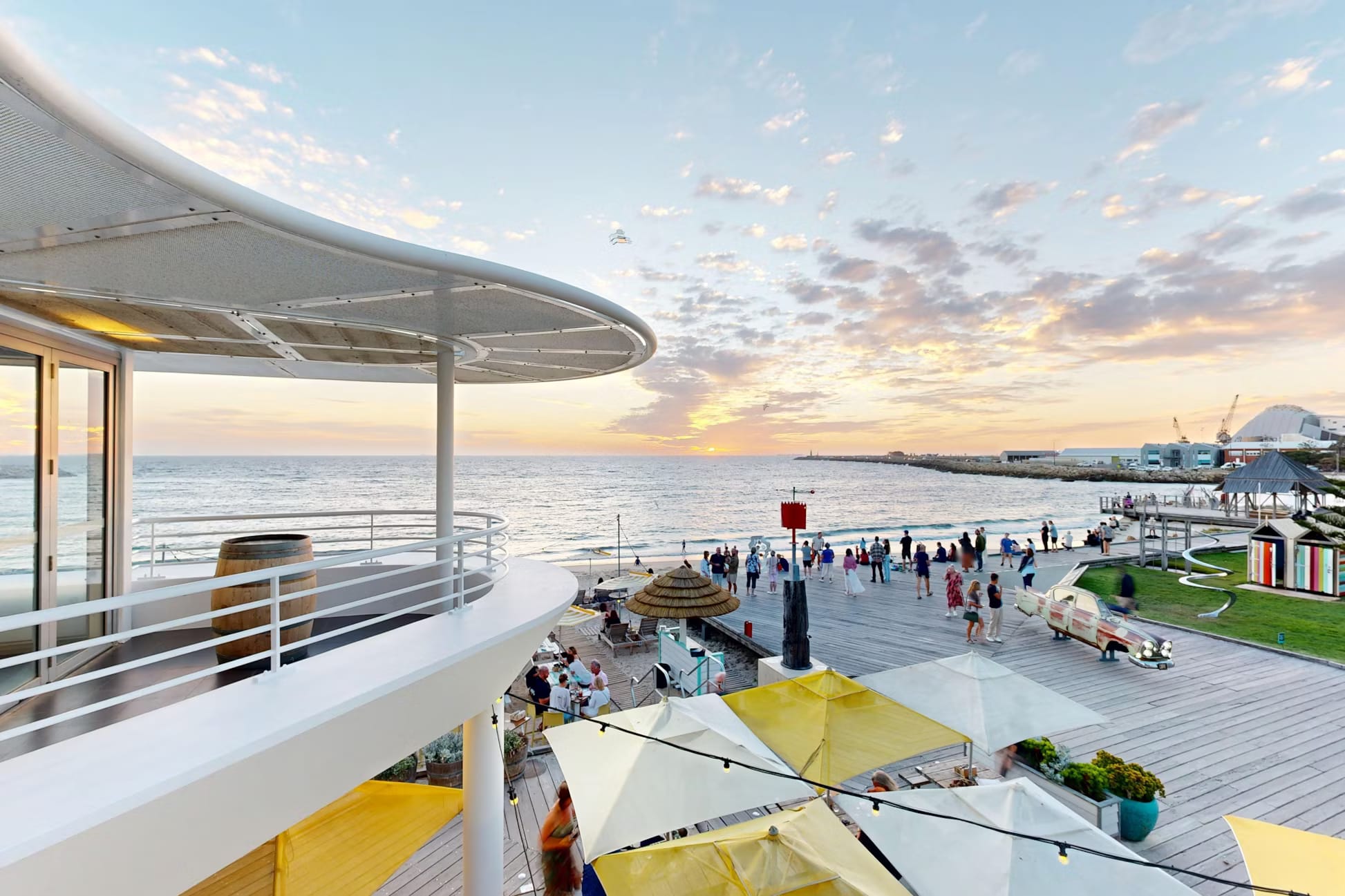 Bathers Beach House, located at 47 Mews Road in Fremantle, Western Australia, is a premier beachfront dining destination offering an unparalleled coastal experience. The purpose-built function room at Bathers Beach House boasts uninterrupted 180° views over Bathers Beach and the Indian Ocean, offering a stunning backdrop for any event. Designed to create a unique and memorable experience, the space allows guests to enjoy exceptional food and drinks that highlight the best of Western Australian produce. On Sundays (and select other dates), the upstairs function room is open to the general public and smaller group bookings making it perfect for a casual get together. Areas are based on group size and are set with a combination of couches and high bar tables/stools. Upstairs Area is perfect for: Cocktail Party venue Perth | Birthday venue Perth | Wedding venue Perth | Engagement party venue Perth | Baby shower venue Perth | Private Dining Room Perth | Networking venue Perth | wedding venue Perth