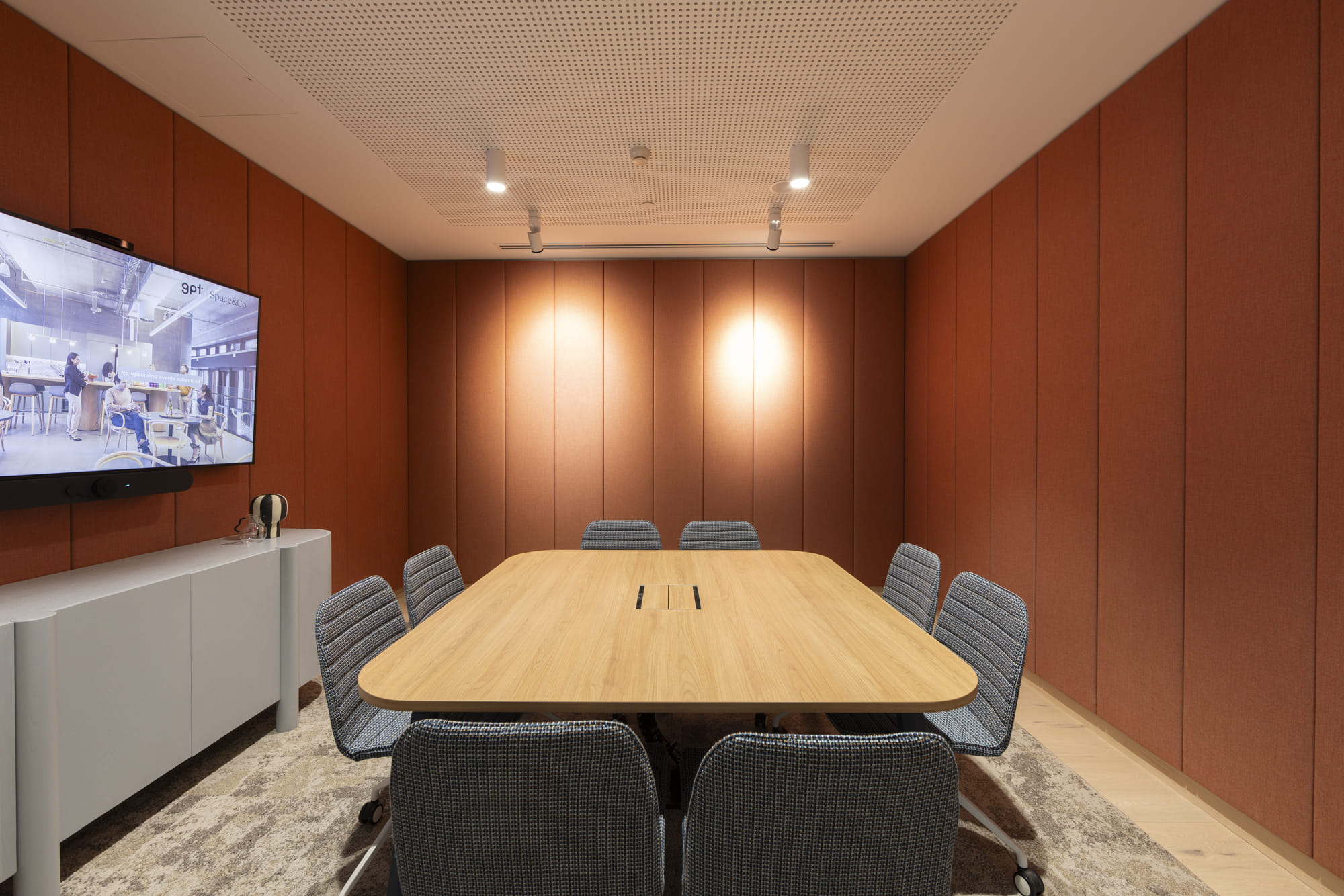 Located on the first floor of Darling Park Tower One, this 8-person boardroom is the ideal location for company meetings, presentations, and collaborative sessions. The room includes advanced AV connectivity with a large high-definition presentation screen, built-in microphone and speaker hubs, multiple cameras, and bring-your-own-device (BYOD) capabilities. GPT Space&Co at Darling Park is known for its exceptional service and professional support. A dedicated onsite team is available to welcome guests, resolve technical issues, and ensure meetings run seamlessly - allowing clients to focus on their priorities while all logistical details are expertly handled. Access to the space includes use of well-appointed breakout areas, complete with a premium coffee machine and tea-making facilities. Meeting rooms are thoughtfully prepared with water and mints for attendees, and all visitors benefit from unlimited access to the venue’s high-speed guest WiFi. Additionally, we can assist with catering requests through our partner, Avenue on Sussex, ensuring your meetings are complemented with quality refreshments.