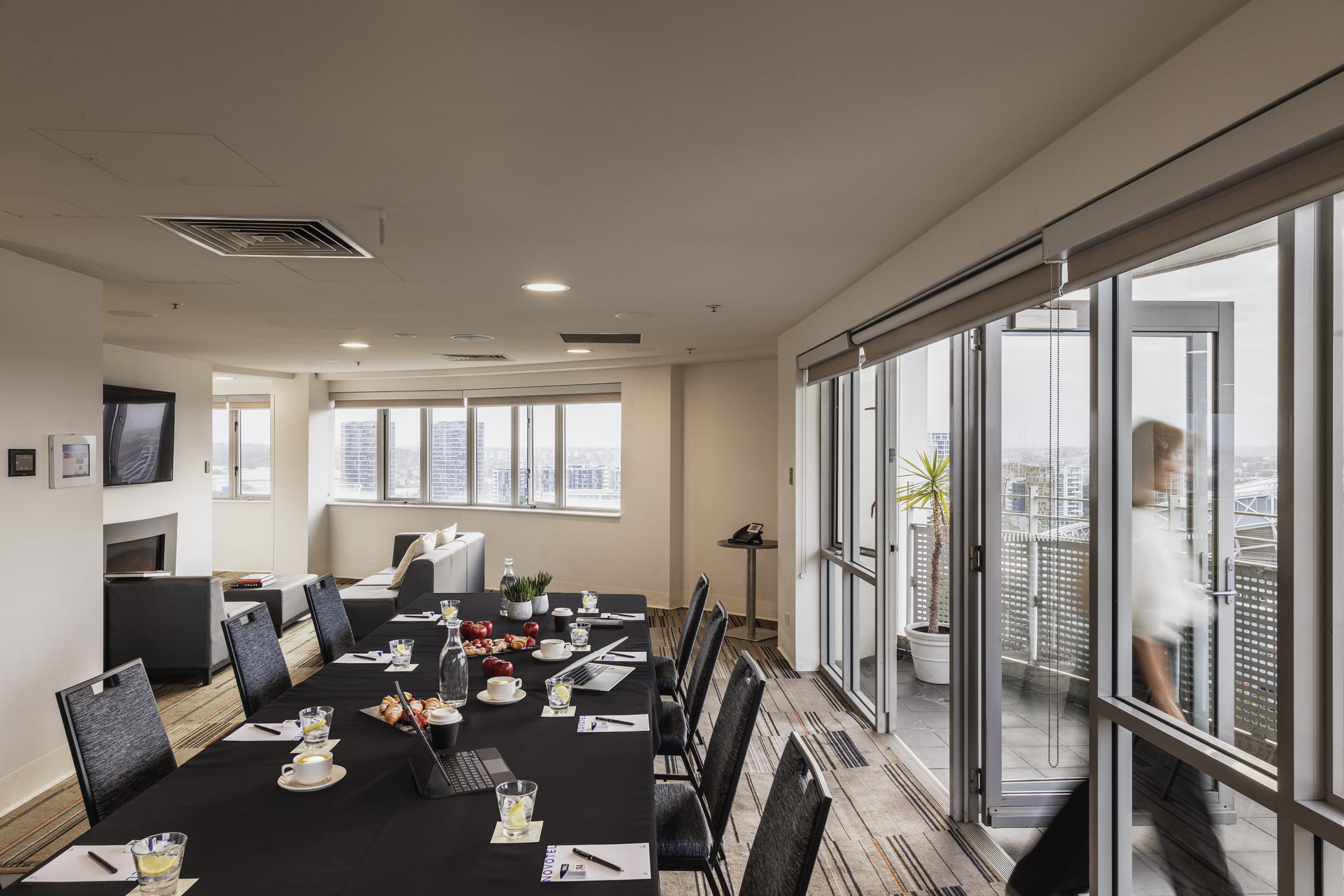Welcome to The Lounge, nestled on the prestigious Level 17, offering an exclusive aerial view of the vibrant Sydney Olympic Park. This sophisticated space boasts an expansive balcony, enveloping you in breathtaking panoramic views while infusing the room with an abundance of invigorating natural light. Designed to meet your every need, The Lounge features an in-built service area, ensuring seamless event execution. Picture yourself in the elegant lounge area, complete with a fireplace that adds a touch of warmth and refinement to your gatherings. The Lounge is not just a venue; it's an experience. With its captivating surroundings and thoughtful amenities, this space is tailor-made for private meetings and networking events. Whether you're fostering meaningful connections or engaging in focused discussions, The Lounge sets the stage for a sophisticated and memorable occasion. Elevate your events to new heights with the perfect blend of modern elegance and natural charm. The Lounge is perfect for: Cocktail Party venue Sydney | Birthday venue Sydney | Wedding venue Sydney | Team activity venue Sydney | Engagement party venue Sydney | Baby shower venue Sydney | Studio venue Sydney | Creative venue Sydney | Workshop venue Sydney | Meeting room Sydney | Private Dining Room Sydney | Presentation venue Sydney | Networking venue Sydney | Conference venue Sydney | Corporate Function venue Sydney | Christmas Party Venue Sydney | Party Boat Sydney