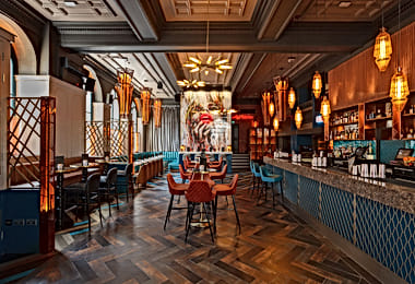 When you walk through the doors of Tonight Josephine, enjoy the fun atmosphere with the fun neon lights, comfy seating and quirky mirrored walls.