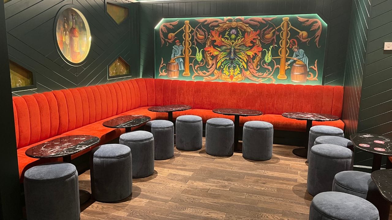 The Wee Pub has a traditional Scottish charm, featuring rustic wooden furnishings and a warm, intimate atmosphere. The space is ideal for small gatherings, offering a snug setting for up to 20 guests. It can be privately hired for parties, with tailored drinks packages and a buffet menu at £14 per person available. The icing on the cake? The Wee Pub also offers gin tastings of the finest Scottish botanical gins.