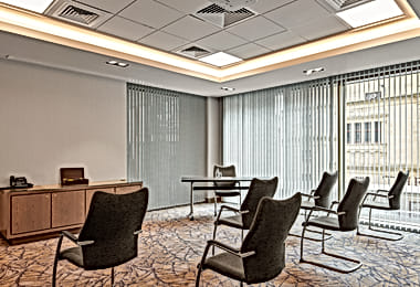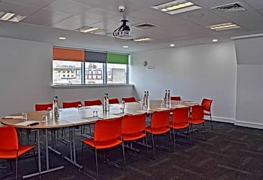Located on Renfrew Street, about a 10-minute walk from Glasgow Queen Street station, Clockwise is an 11-storey sleek and contemporary serviced co-working and meeting room space. Seven meeting rooms, ranging in size from 4 to boardrooms of 12, all offer high-speed WiFi, complimentary refreshments, video and audio conferencing systems, and further catering options. Its relaxed décor and atmosphere, central location, and amenities make Clockwise a top pick for meeting rooms.