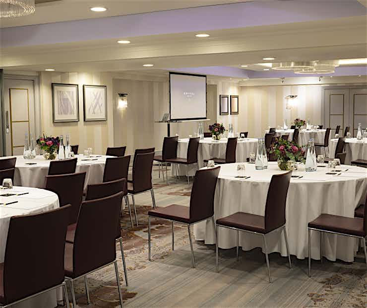 Guests benefit from complimentary refreshments, including Lilly fresh coffee, a selection of Fortnum & Mason teas, premium Hildon mineral water, and assorted biscuits. Whiteboards/Flipcharts, stationery, and writing pads are also provided.