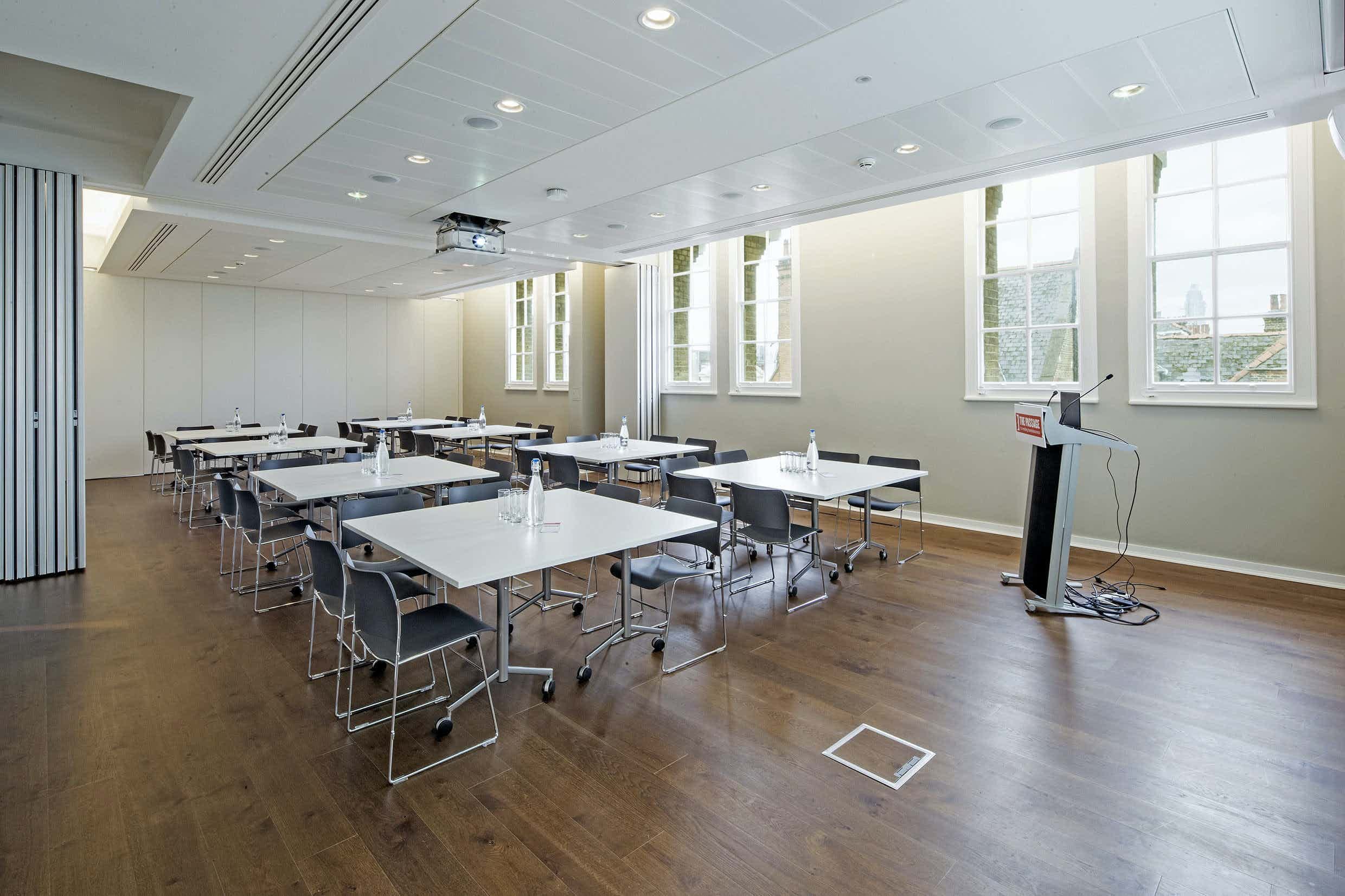 Conveniently located near Liverpool Street in the heart of the City, the Mezzanine and the XCHG Spaces' and the Sarah Gilbert auditorium offer state-of-the-art London conferencing space. The Mezzanine is a 350-capacity modern event space, and the equally modern auditorium is a 60-capacity space. Both offer stunning views of the London skyline and state-of-the-art AV.