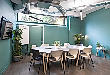 With up to two boardrooms available for hire, both spaces have room for up to 16 guests. Get straight to business with an HD screen, WiFi and a video conferencing suite, but before you begin, the bookshelf and comfy leather armchairs in the adjacent lounge should keep your clients company while they wait.