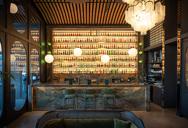 Enter Gymkhana’s elegant world and be greeted with the room’s rich tones, high ceilings, plush leather seats, and photographs and art hung from every wall.