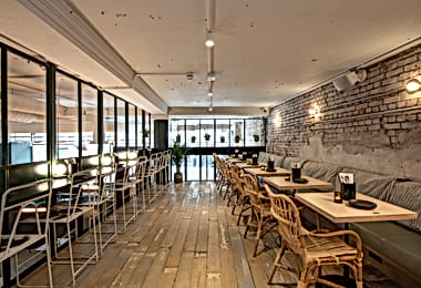 The interior is grand without losing good taste; the handsome townhouse retains its sash windows which bring plenty of light into the comfortable function room. The whole building has capacity for 100 people, and it's an ideal space to relax, discuss and, of course, have lunch.