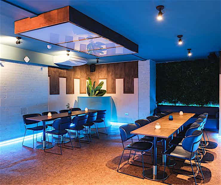 Moyagi's karaoke rooms are soundproofed and equipped with top-notch audio technology. You can choose from 150,000 songs, the furniture is arranged to encourage dancing, and the in-room ordering system lets you order all the food and drinks to keep the party going. And when you need a break from the singing, there's a main vibrant bar area where you can socialize, mingle, and indulge in delicious food, snacks, and drinks.