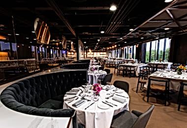 The Living Room is a comfortable breakout area, relaxed and casual, ideal for both meetings and events of up to 120 standing, and is often paired with the Globe, a more intimate spot for private dining or a meeting. The Globe can cater to 16 around a dining table or 50 people cocktail-style, and benefit from moveable furniture which make accommodating the needs of your meeting or event a breeze.