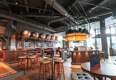 The Rooftop Garden at The Culpeper is a beautiful, green space bar with delicious cocktails, mouth-watering food, and stunning views. The coolest thing about this venue is that they grow vegetables on the roof, a lot of which you will find in your meals or as garnishes in your drinks. Examples of such vegetables include salad leaves and herbs all year round, and courgettes, beans, tomatoes, chillies, aubergines, and more in the summer. This is literally the freshest bar you will find in London.