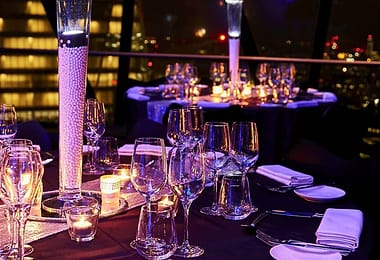 Launching right on the Thames, the Erasmus is extremely flexible and can accommodate any private event you may have in mind, whether that be an intimate dining experience or a 300-person party. In addition to the panoramic views from inside and outside the boat, there are three floors where you can enjoy these views all catered to different moods.