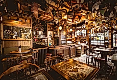 Oddly, for a modern public house, you’ll find no food menu just well-poured pints of cask ale, in surroundings that will take you back to sixties Soho. You’ll be propping up the same bar that once saw great artists such as Francis Bacon, Lucien Freud and Damien Hirst rub shoulders with the literary greats of their day.